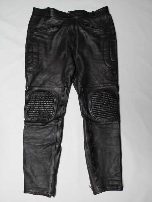 Vintazge leður mótorhjólabuxur reimdar á hlið, 30/32, JTS Biker clothing