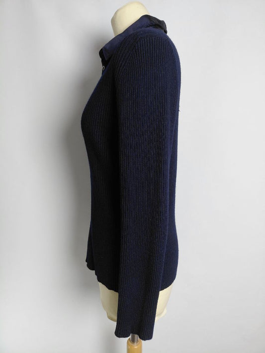 Síðerma peysa með silki kraga, L, Chico´s