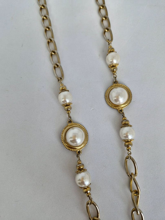 Vintage sítt hálsmen með faux pearl