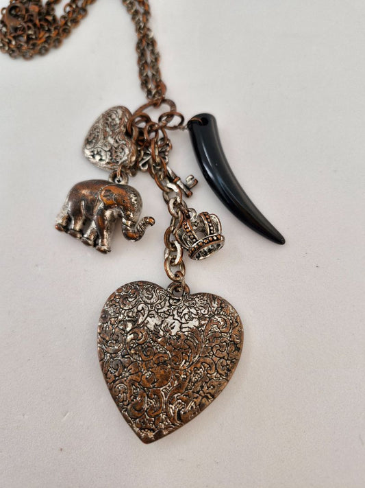 Sítt hálsmen með fíl og hjörtum