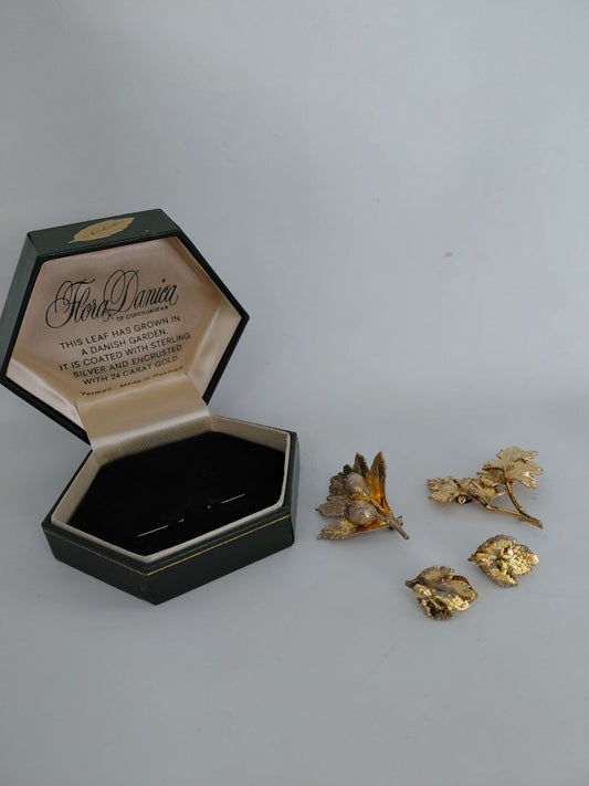 Earrings and 2 pins, Flora Danica of Copenhagen