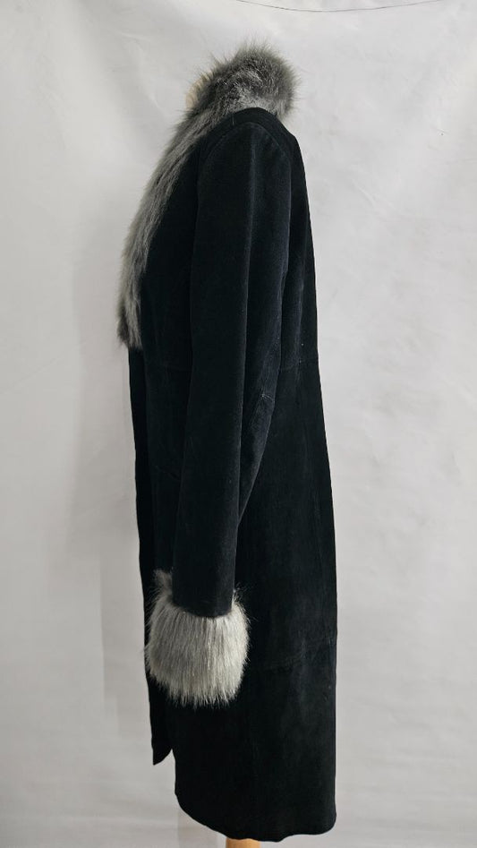 Russian coat with fur collar, L, XOXO genuine leather and suede