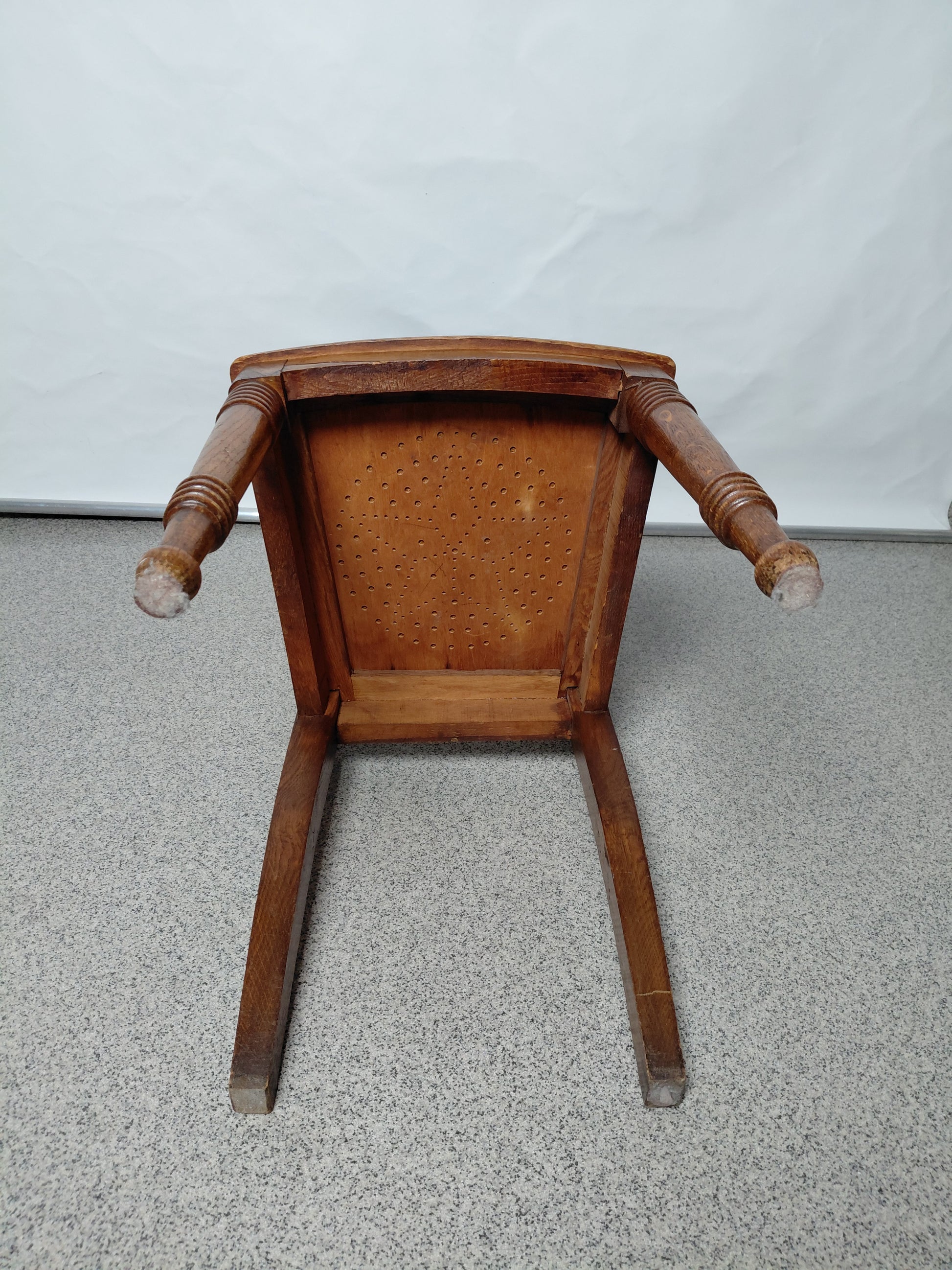 Antík stóll með ekta leður sessu (ár 1900-1920 Jacobean stíll)