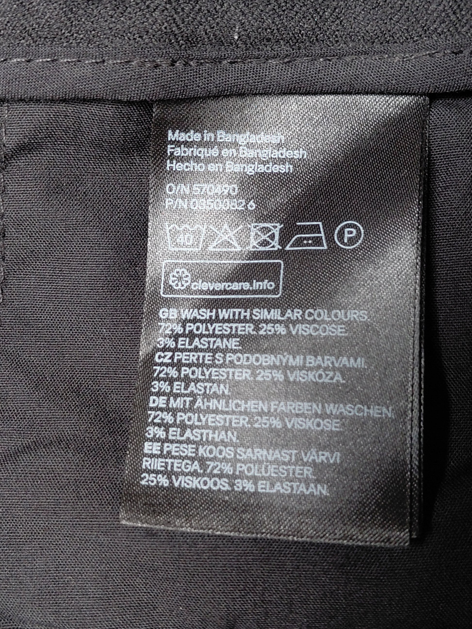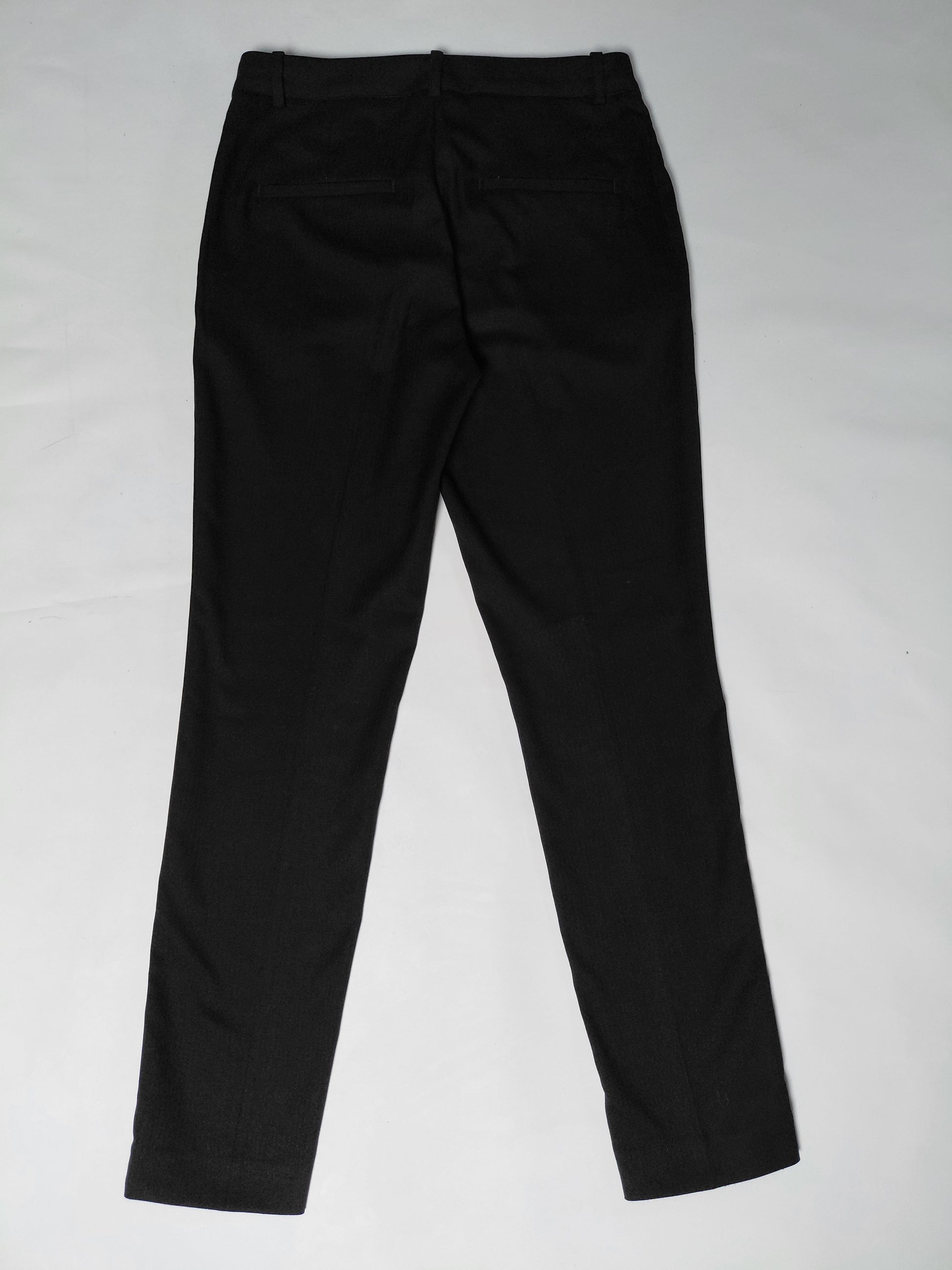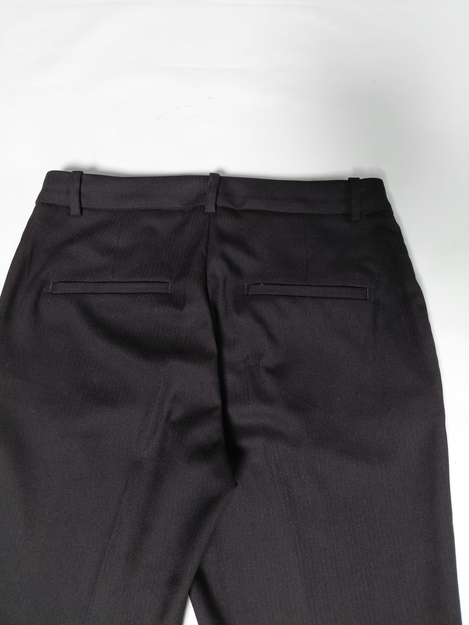 Þægilegar og klæðilegar klæðskerasniðnar buxur, tapered pants. Buxurnar eru svartar en með teinóttu munstri sést mjög lítið en gerir buxurnar klæðilegri, sjá myndir. Buxurnar eru með smá stretci.