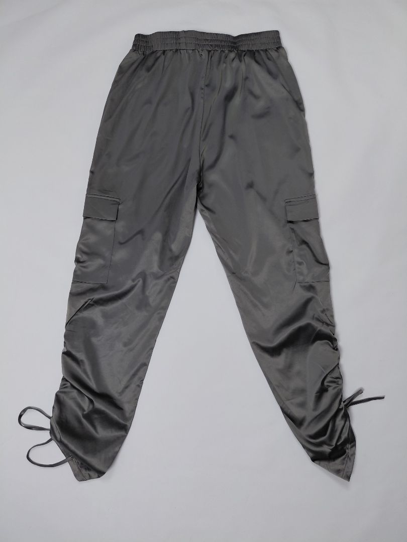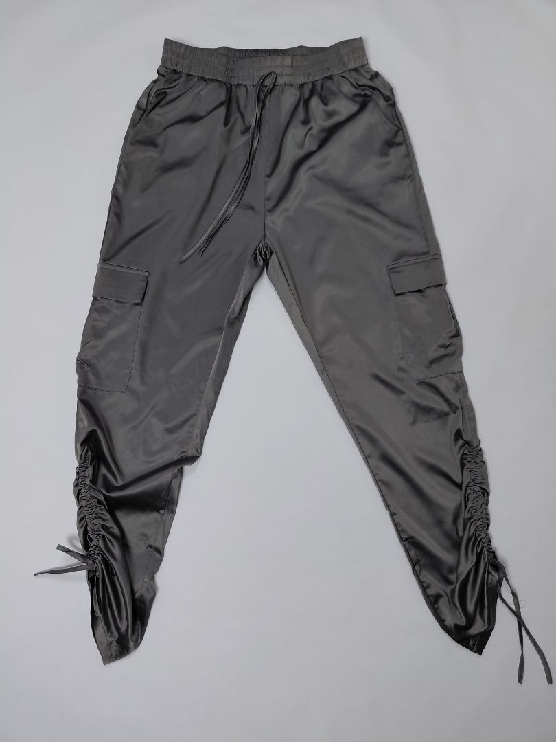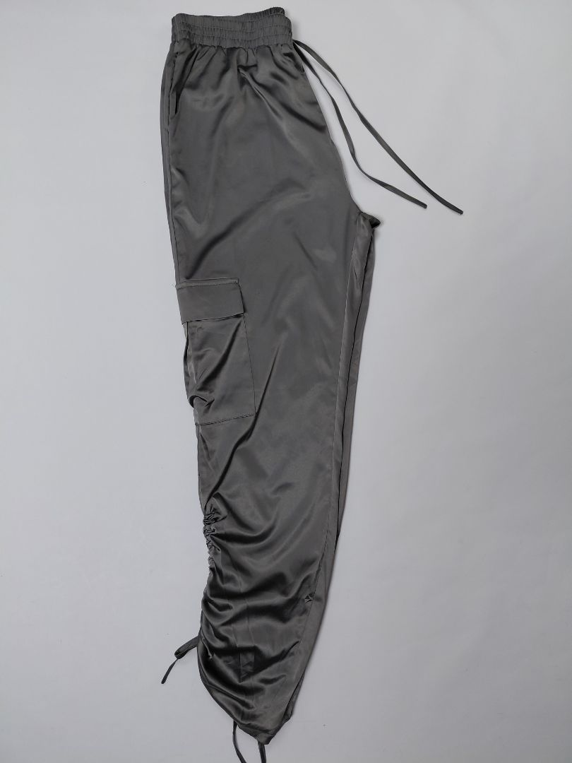 Fallega grænar buxur með teygju í mittið og hægt að rykkja upp á skálmum. Vasar á utanverðum lærum.