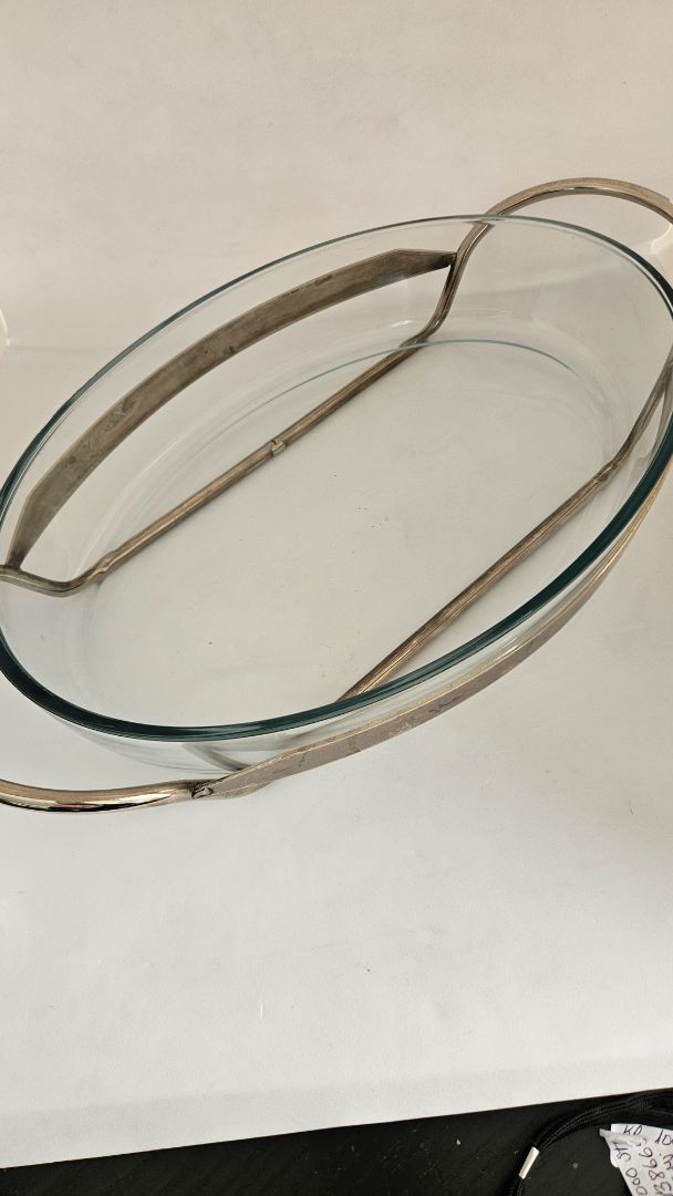 Length of dish 35 cm, with arms 42.5 cm, Width 24 cm, Height of dish 6.5 cm, with stand 7.5 cm.