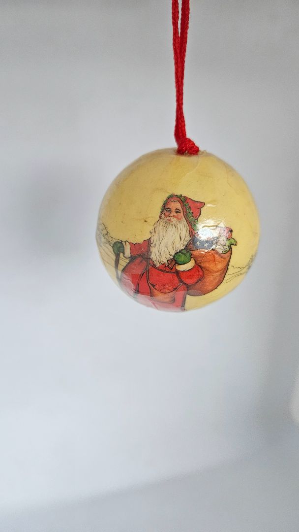 Lítil gamaldags jólakúla skreytt með jólasveini. Stærð 6 cm. Seljast stakar.