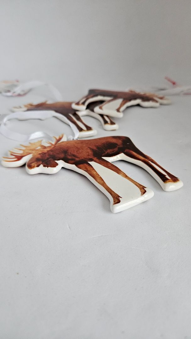 Falleg hreindýra jólaskraut á jólatré úr keramiki. Stærð 10.5 x 10.5 cm. Seljast stök.