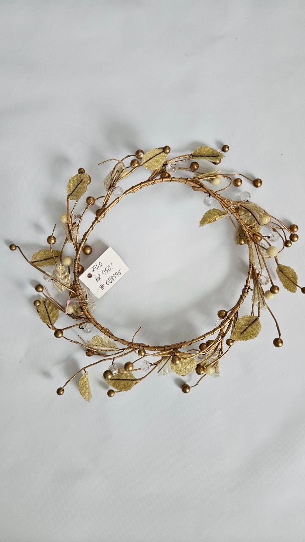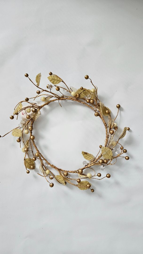 Látlaus en fallegur krans í gylltum lit. Þvermál hrings 20 cm (án skrauts)