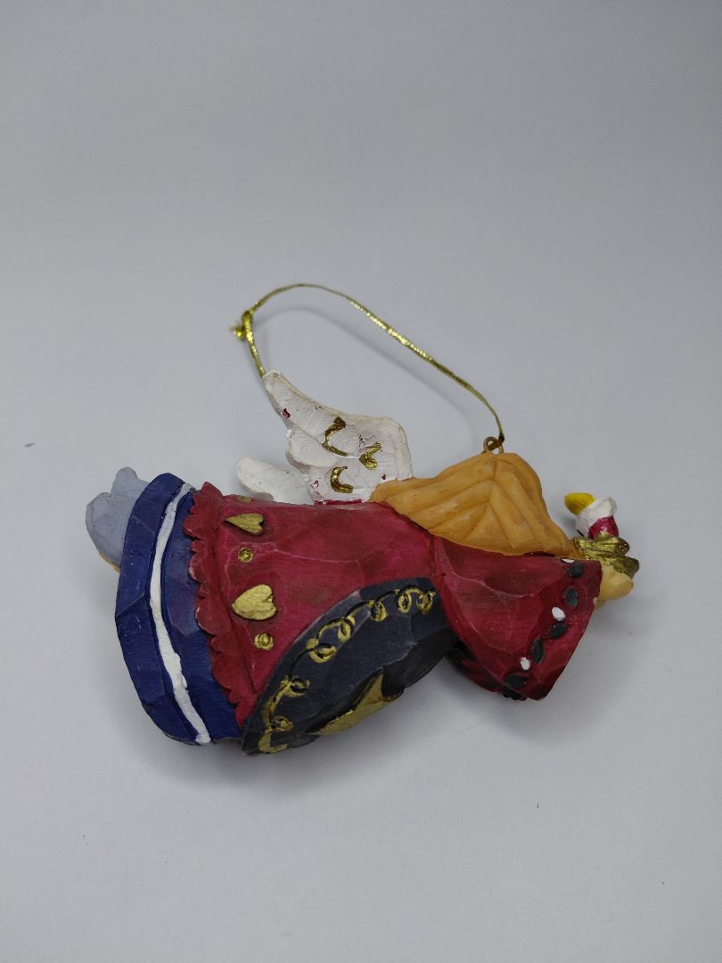 A beautiful angel to hang on a Christmas tree. It's hard to tell from the material whether it's clay or wood.