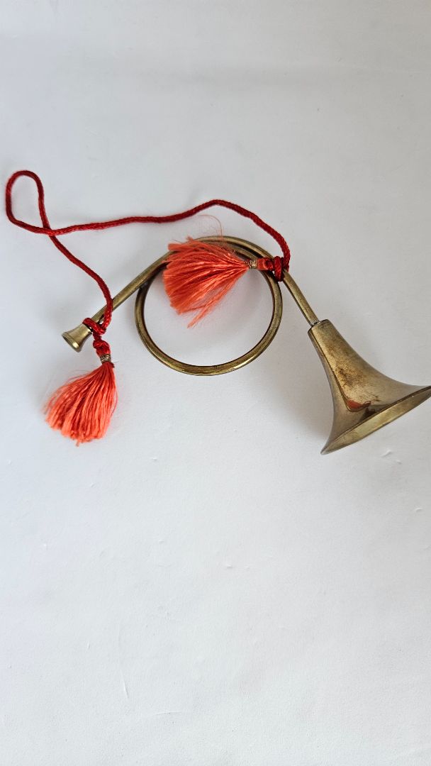 Gamall fallegur brass lúður til þess að hengja upp á jólatré. Stærð 10 x 9 x 5 cm.