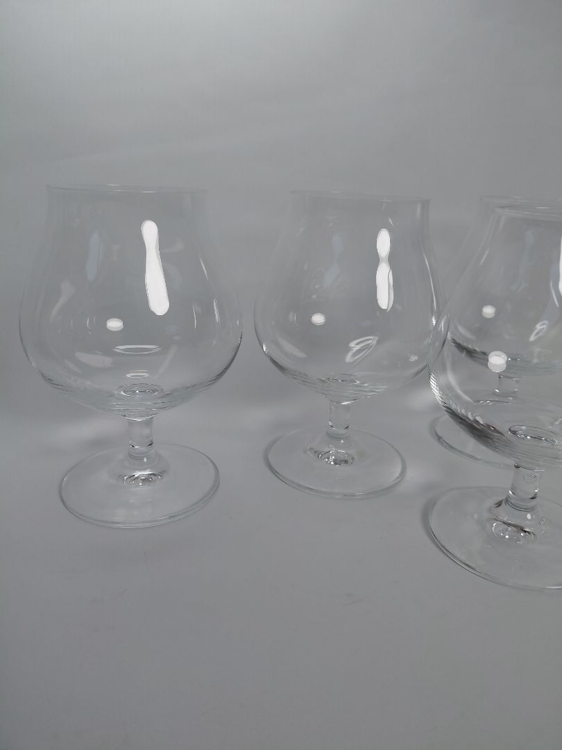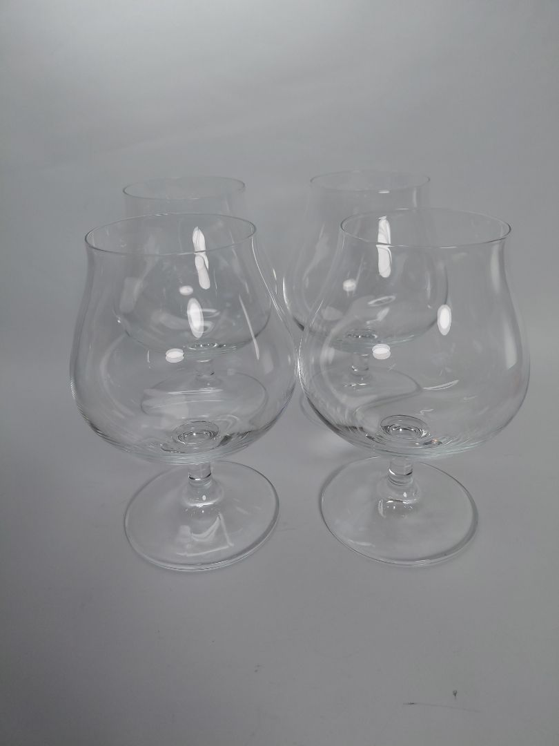 Vegleg og sterk koníaksglös á fæti, 4 stk sem seljast saman.
