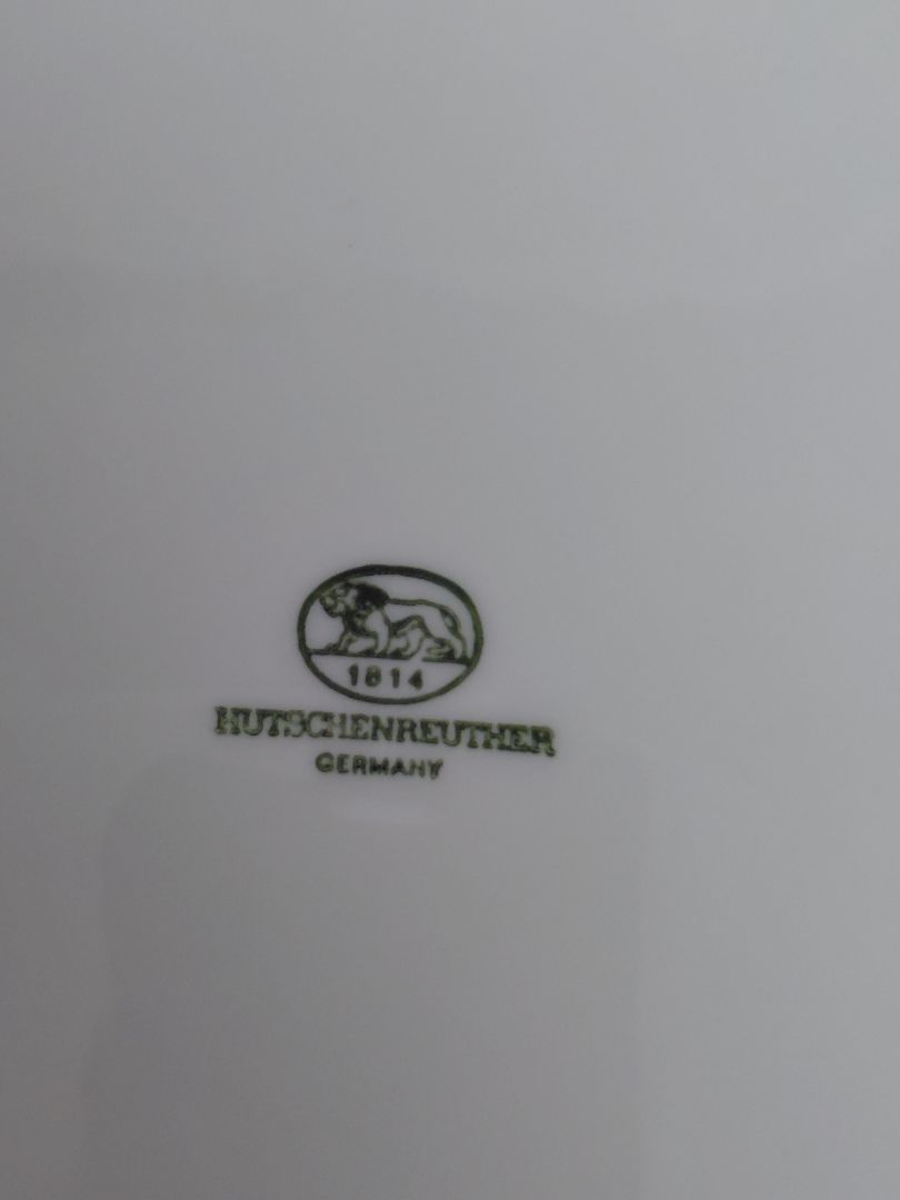 Dinner plates sold individually from the Scala Bianca line by Wolf Karnagel for Hutschenreuther. This pattern was produced between 1970-2000.