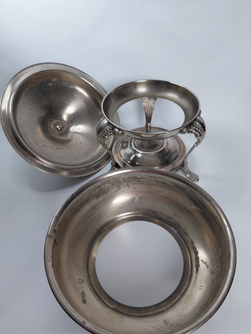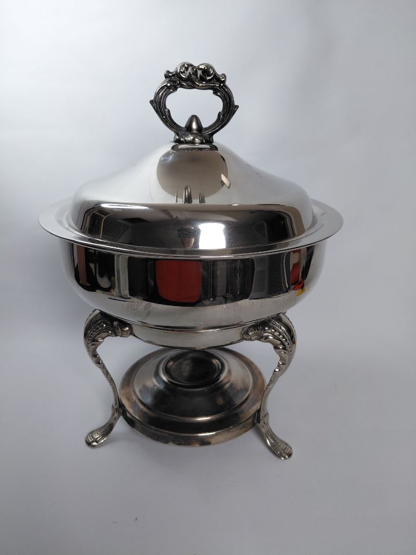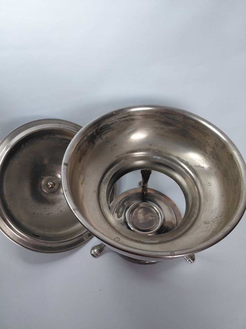 Chafing ílát með loki utan um skál líklegast úr silfri. Takið eftir að glerskál fylgir ekki með.
