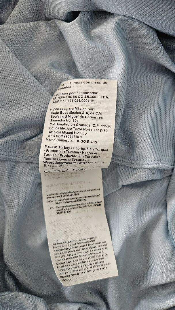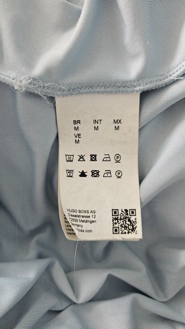 Light blue, short-sleeved dress from Boss. Length from armpit to hem 109 cm.