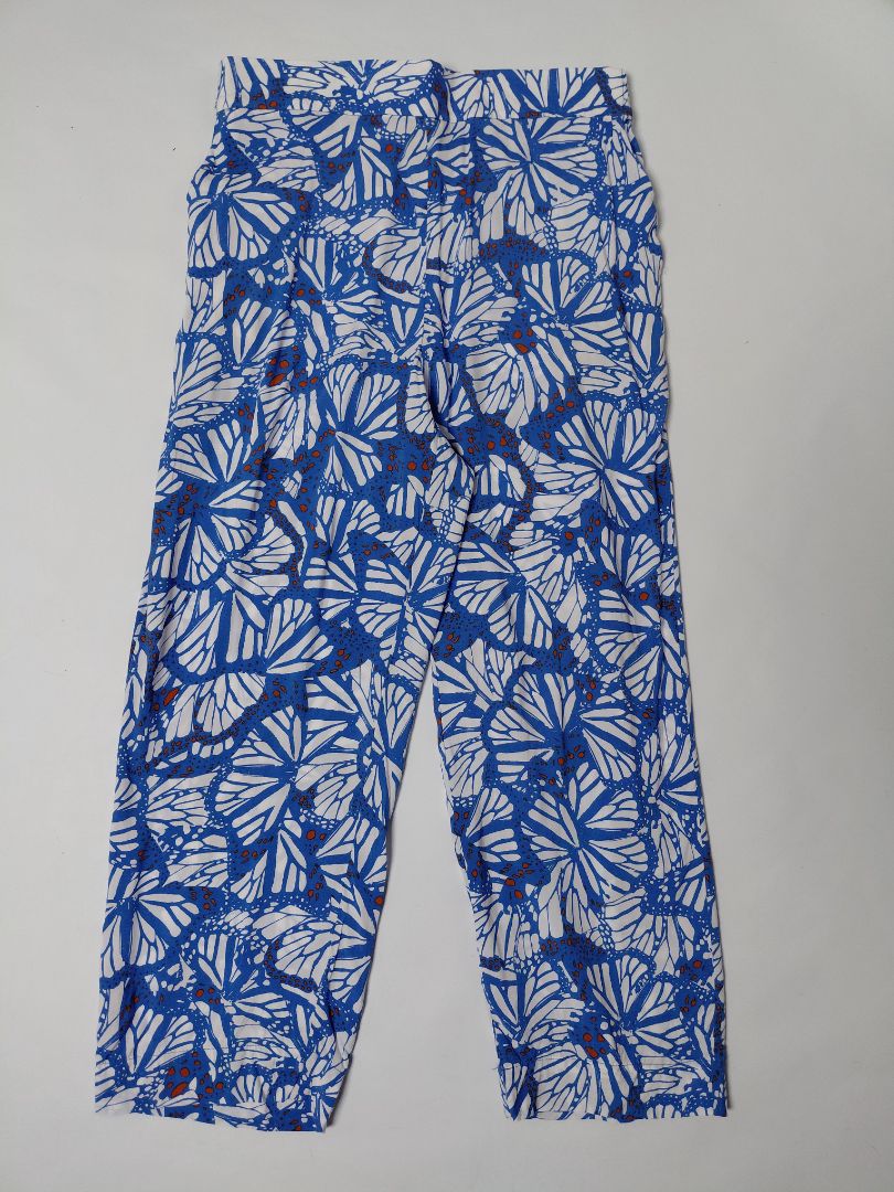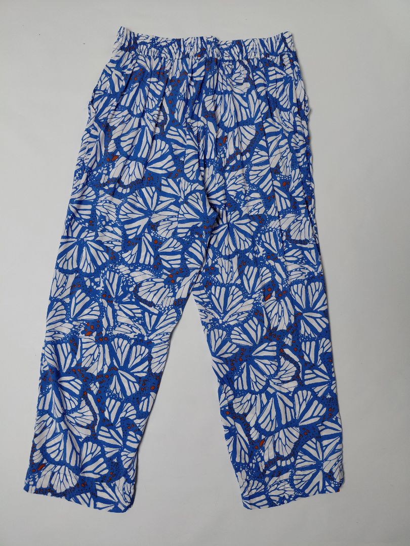 Léttar og víðar buxur í beinu sniði með teygju í mittið og földum vösum á sitthvorri hliðinni: