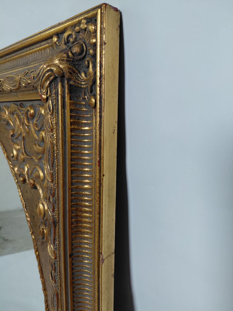 Glæsilegur og veglegur hringlaga spegill í ferköntuðum gull-lituðum og útskornum ramma. Þessi spegill var keyptur í Tékk Kristal árið 2003.