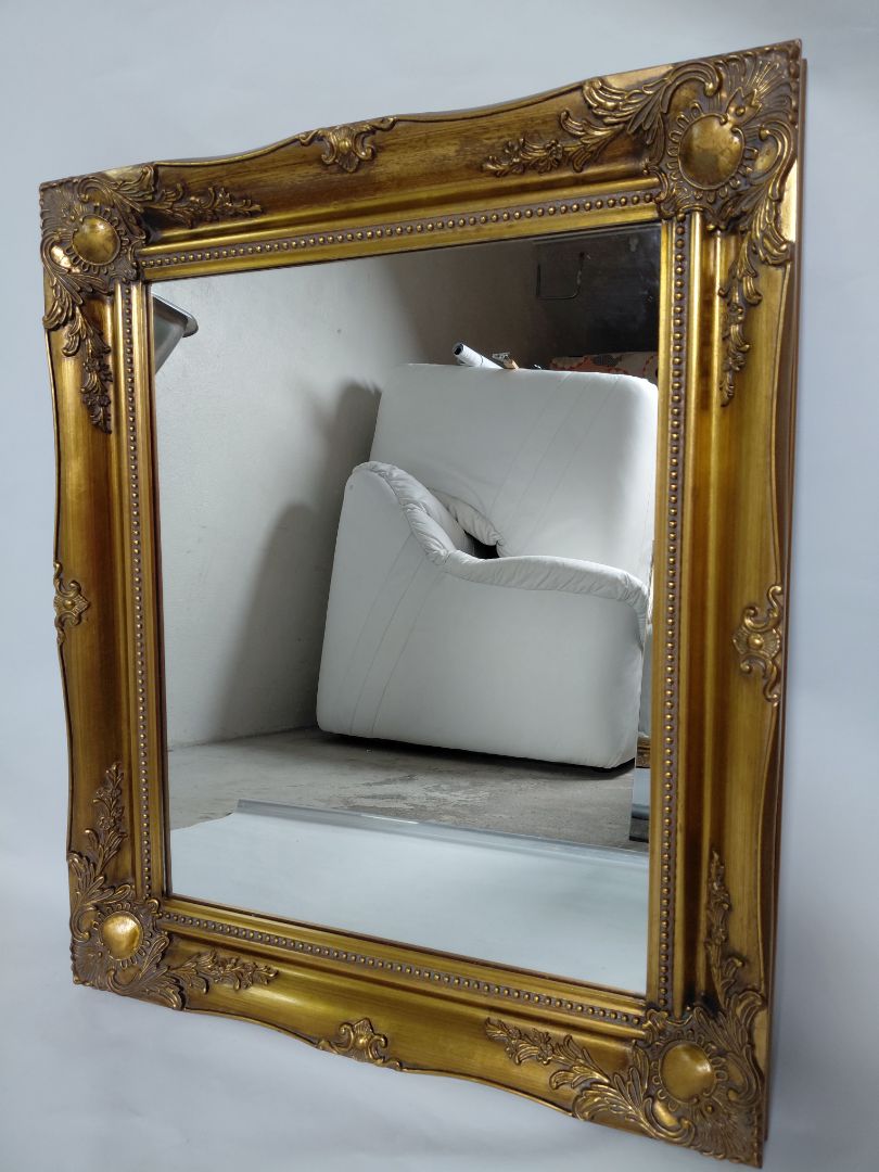 Fallegur og veglegur spegill í Victorian, Hollywood stíl, keyptur í Tékk Kristal árið 2004. Ramminn er gylltur og útskorin í öllum hornum og með sterku baki (corri-cor).