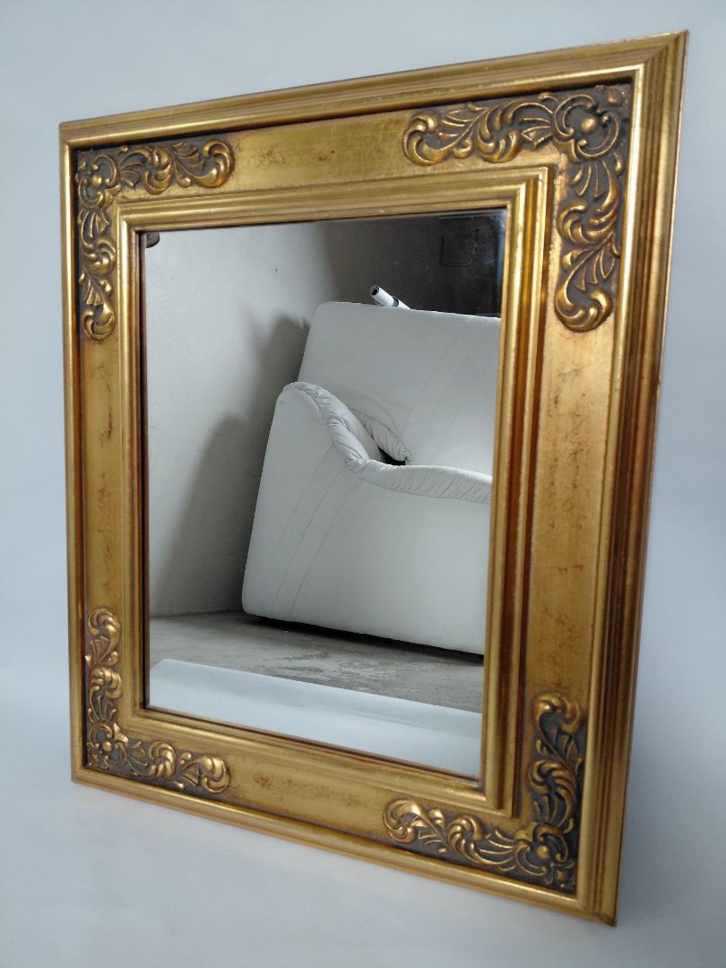 Fallegur og veglegur spegill í Victorian stíl. Spegillinn er gull-litaður og útskorinn á öllum hornum og keyptur í Tékk Kristal árið 2002.