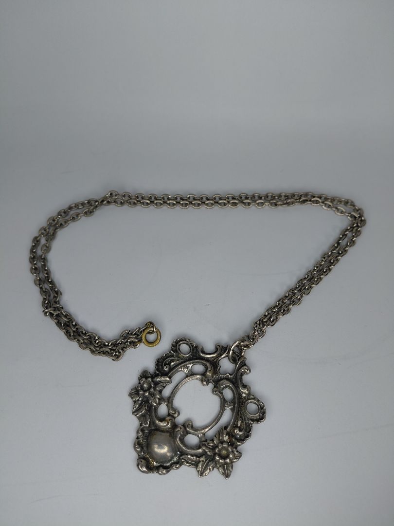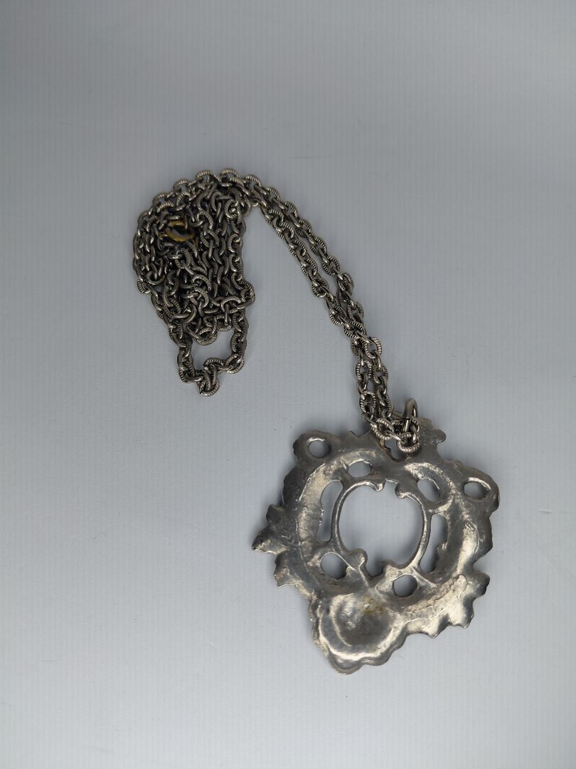Fallegt vintage hálsmen með blóma meni. Ekki er vitað um nákvæman aldur þessa mens.