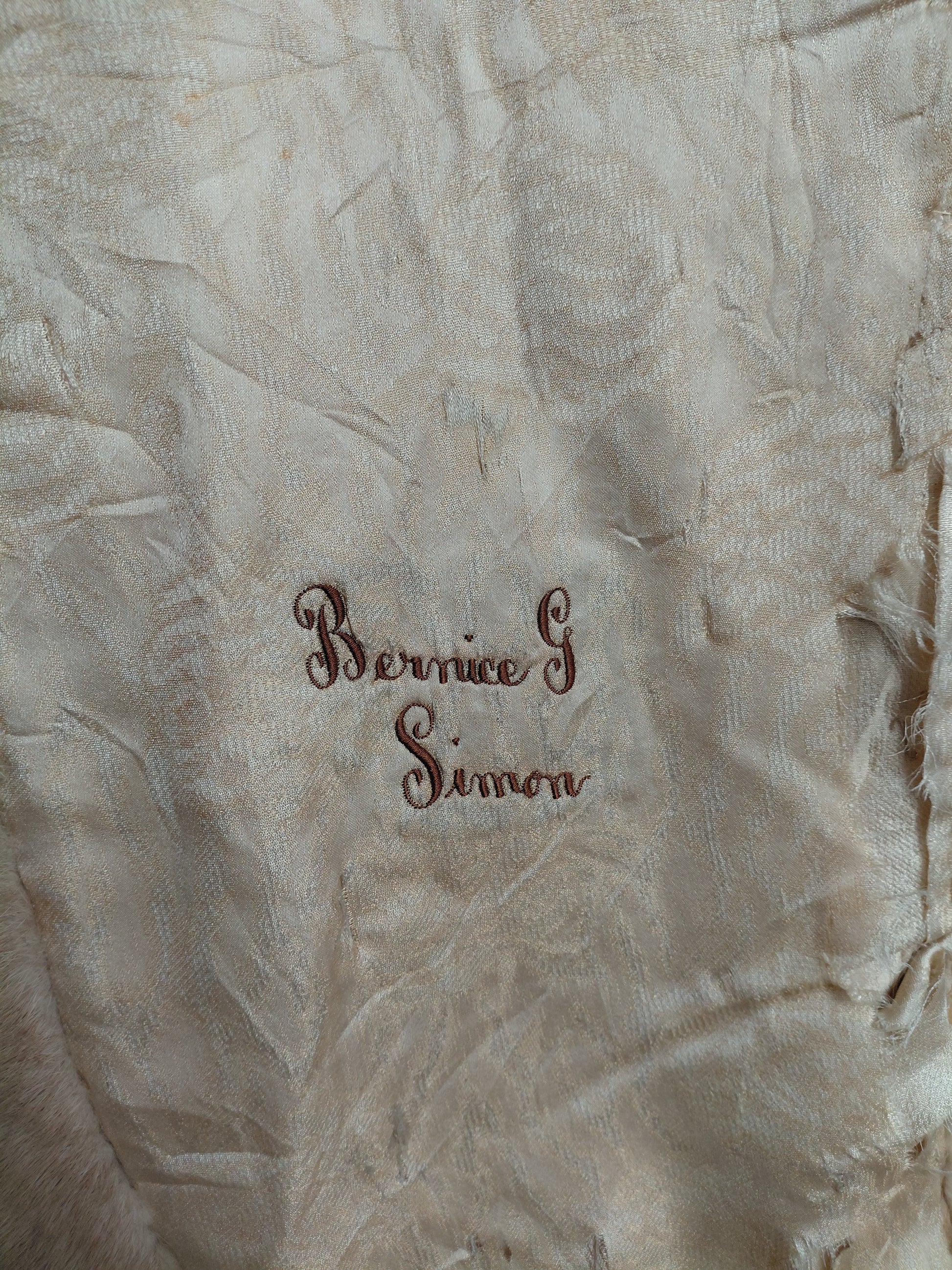 Ekt pels slá frá Ameríska, New York fyrirtækinu Zinn's Furs, sem er fyrirtæki sem starfaði í Manhattan um miðja 20. öld (1950s). Nafnið Bernice S Simon er líklegast nafnið á upprunalegum eiganda þessa pels. Pelsin er líklegast úr mink og fóðraður með silki fóðri. Það er hægt að smella slánni saman með krækju á miðri bringu. En slár sem þessar voru mikið í tísku á árunum 1940-1950.