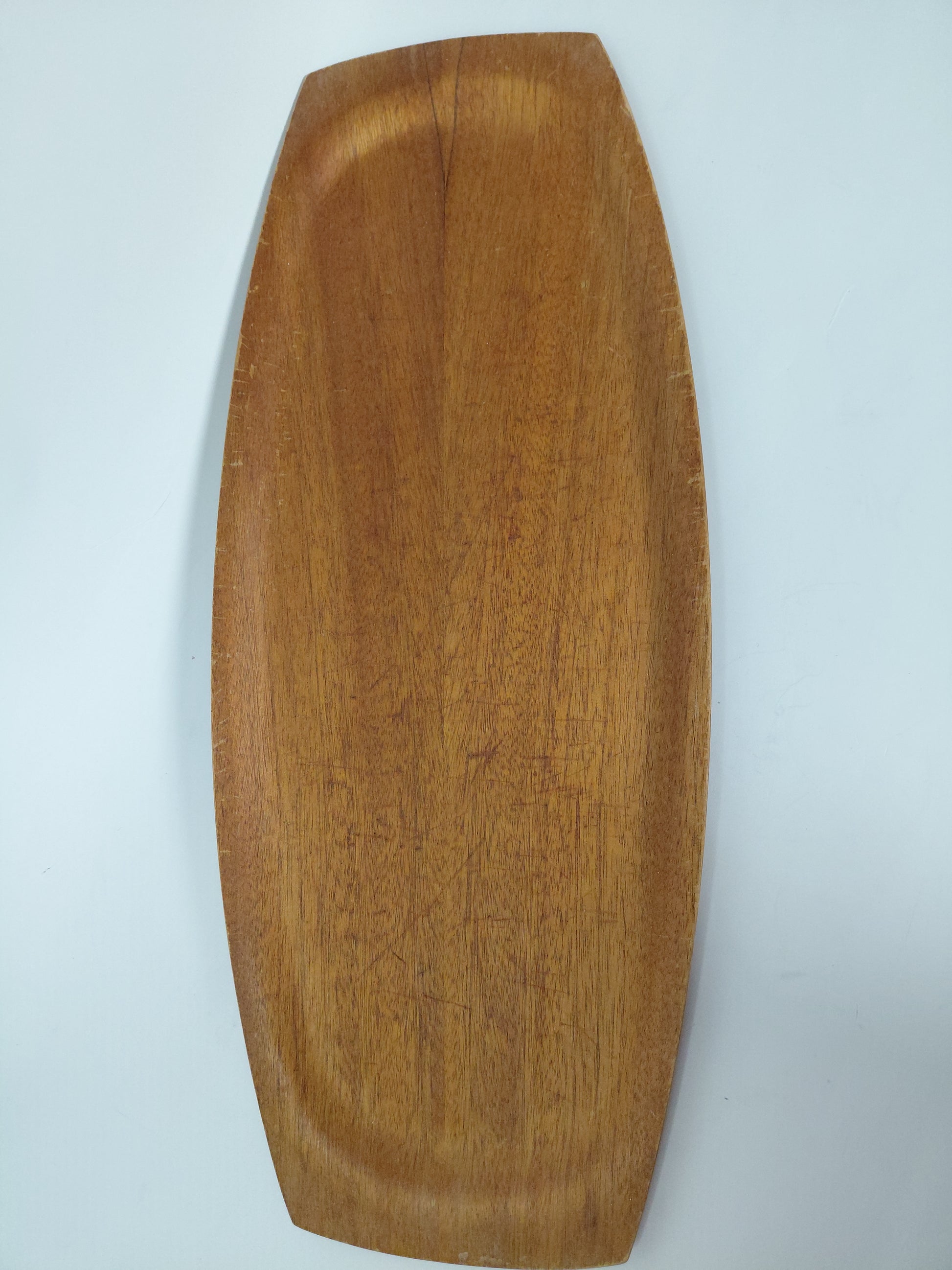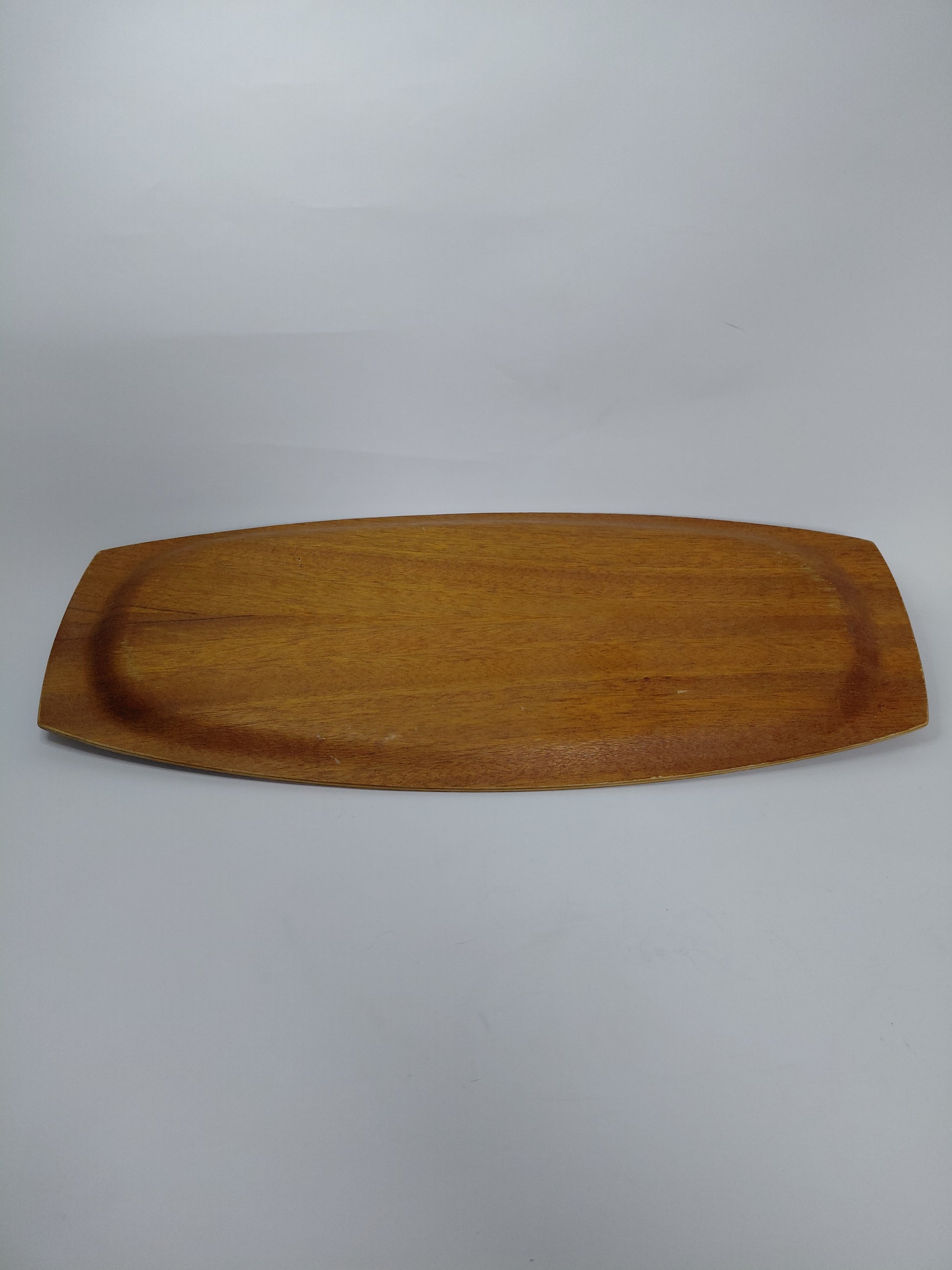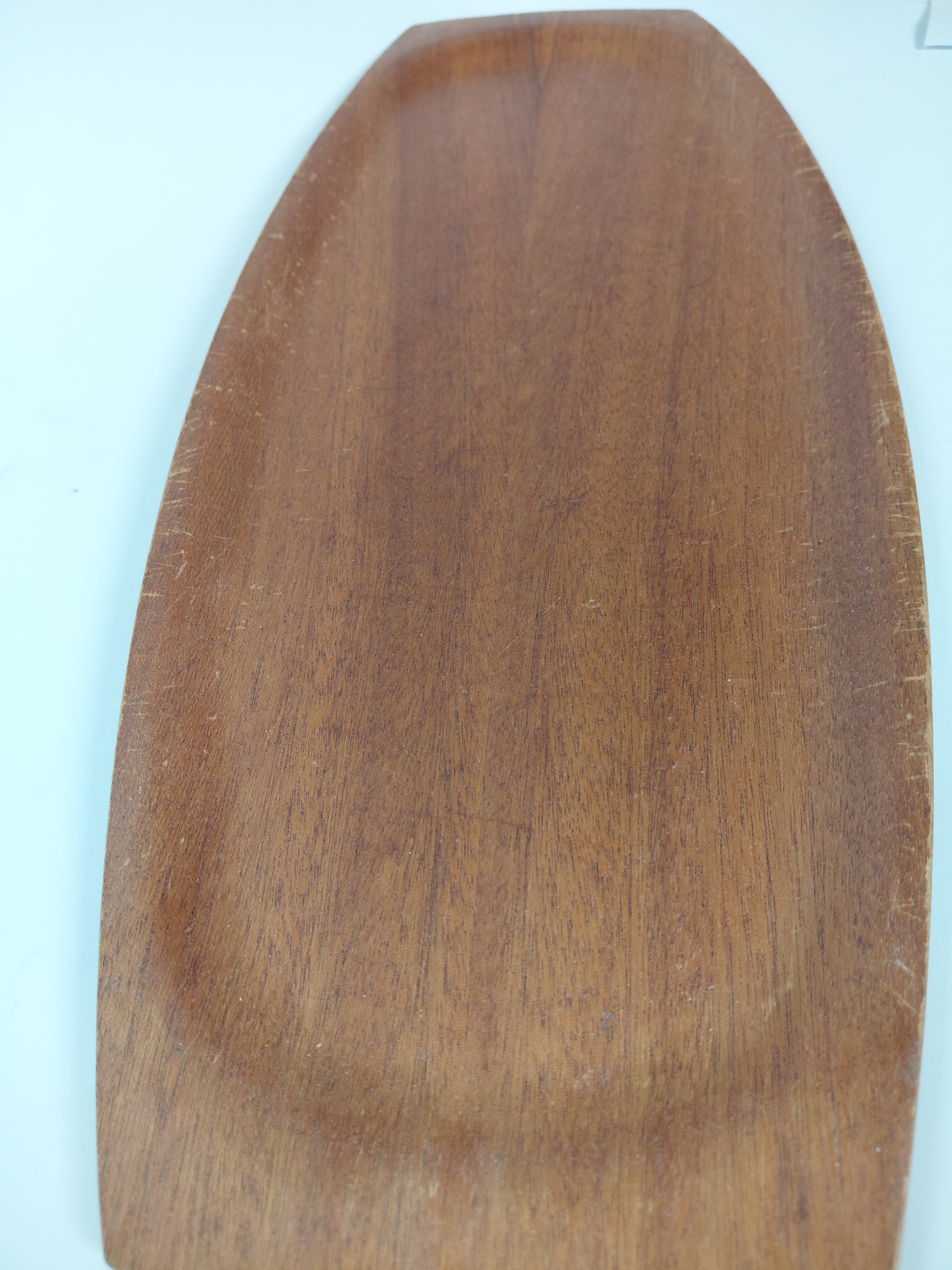 Fallegur ílangur danskir tekk bakki frá 7. áratugnum (1960as). Bakkinn er rispaður sem gefur honum fallegan vintage keim. Sjá myndir.