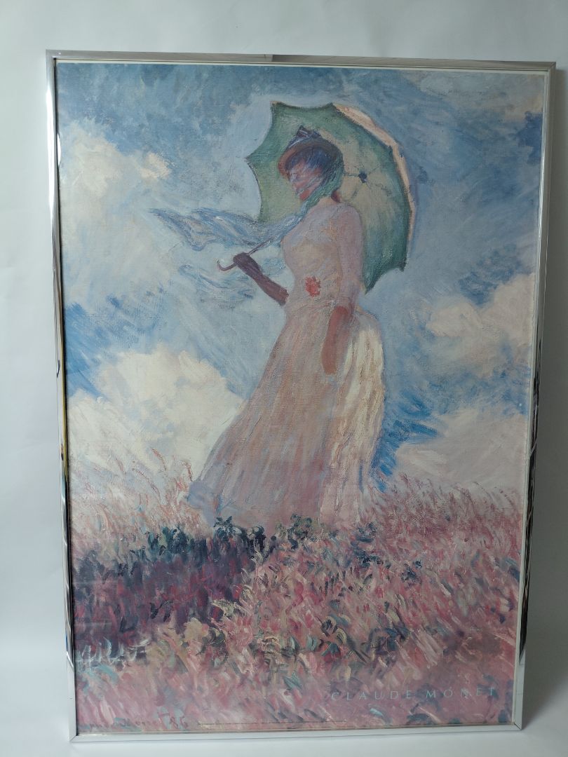 Eftirprentun af málverkin u Woman with a Parasol – Madame Monet and Her Son eftir Claude Monet. Myndin er í ramma.