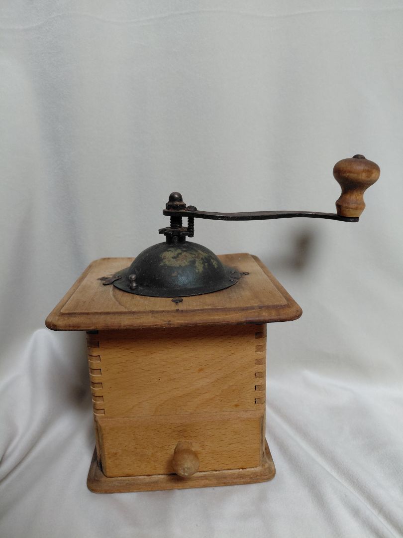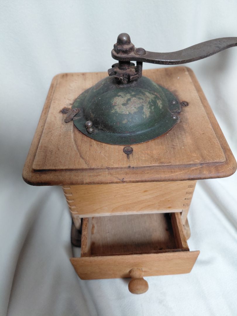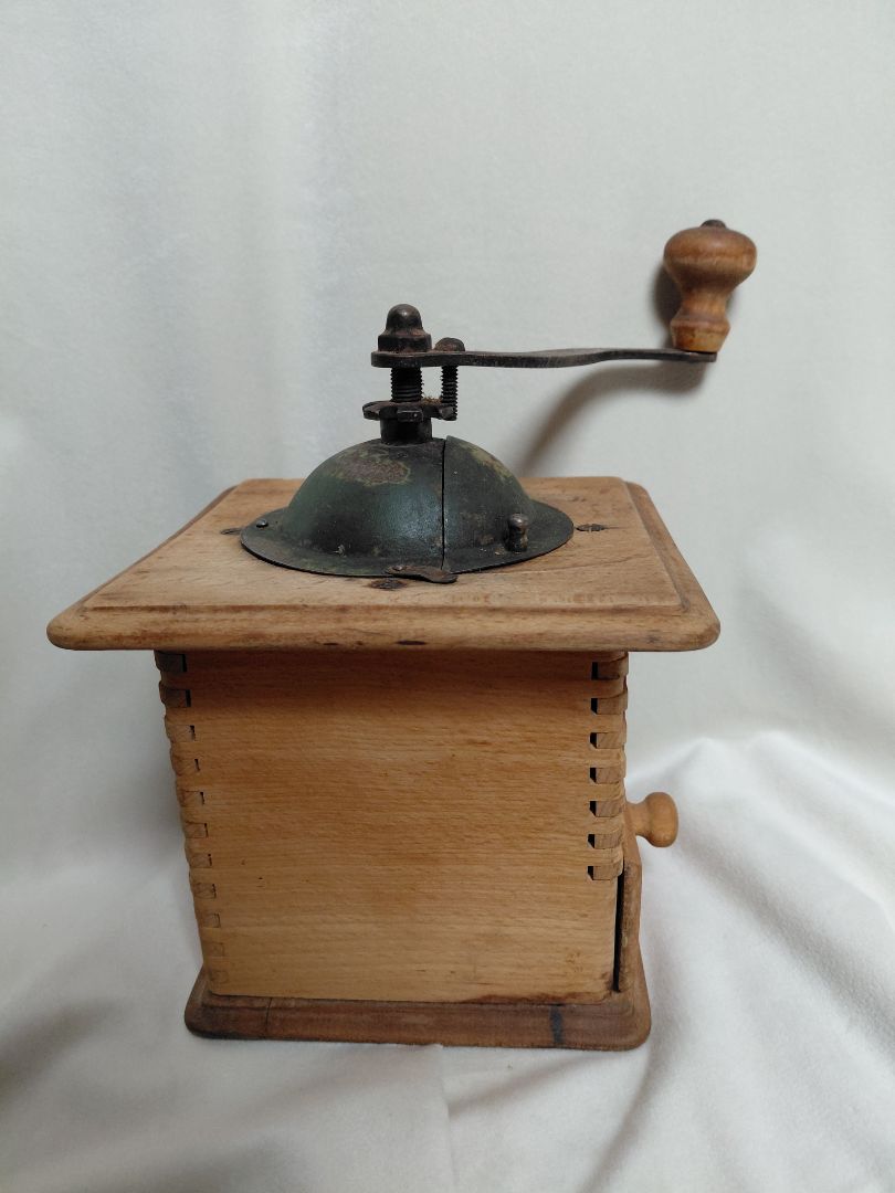 Antík kaffikvörn, eða kaffi mylla, frá ca 1930s. Þessi vara er seld sem skrautmunur en ekki til almennra nota.