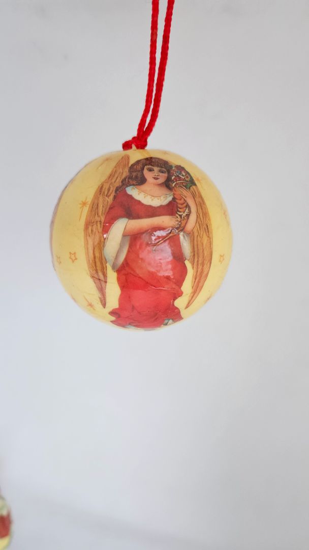 Lítil sæt jólakúla skreytt með engli. Stærð 6 cm.