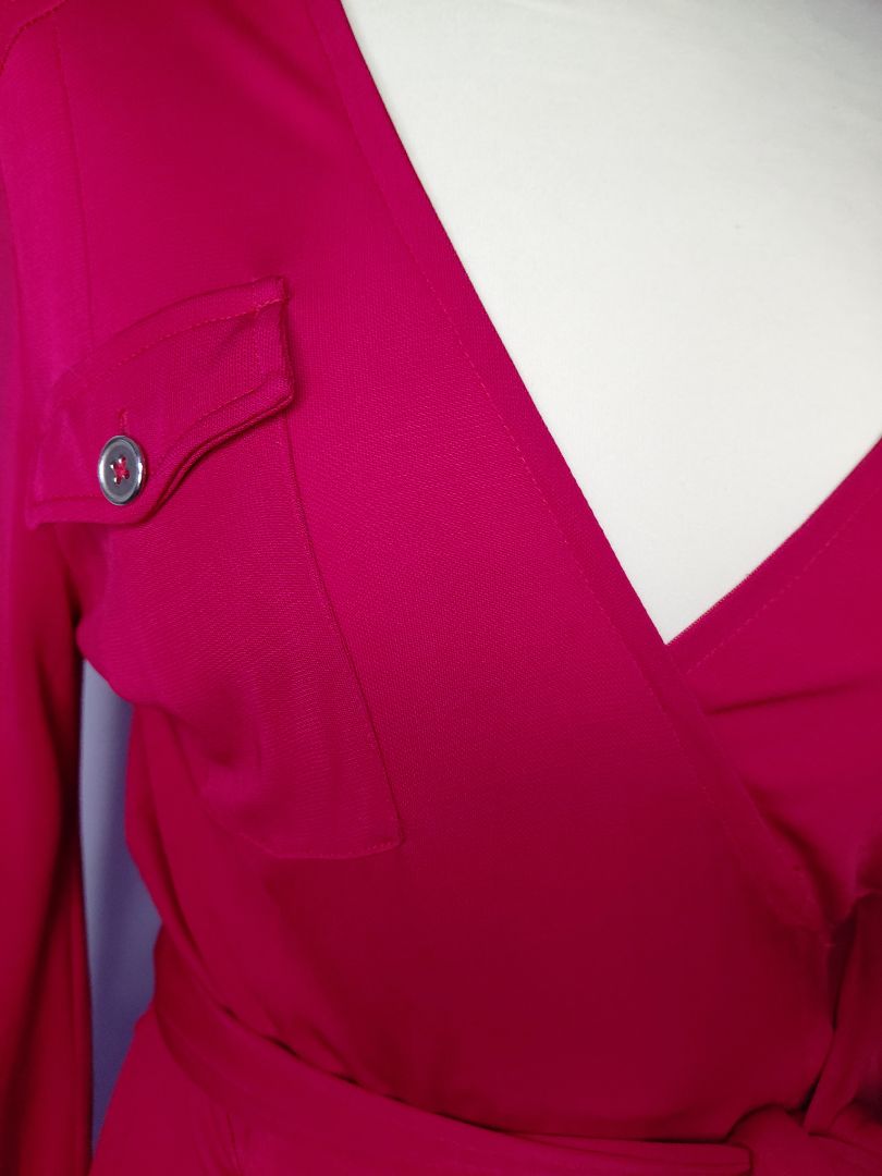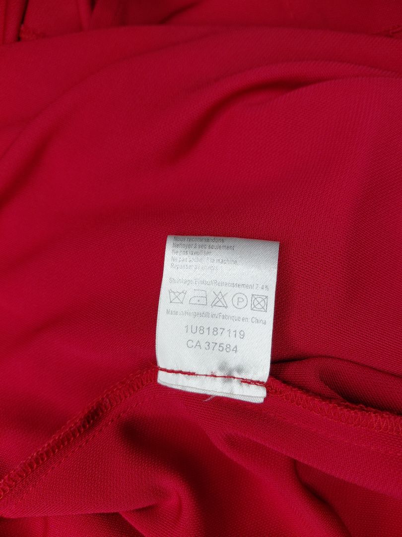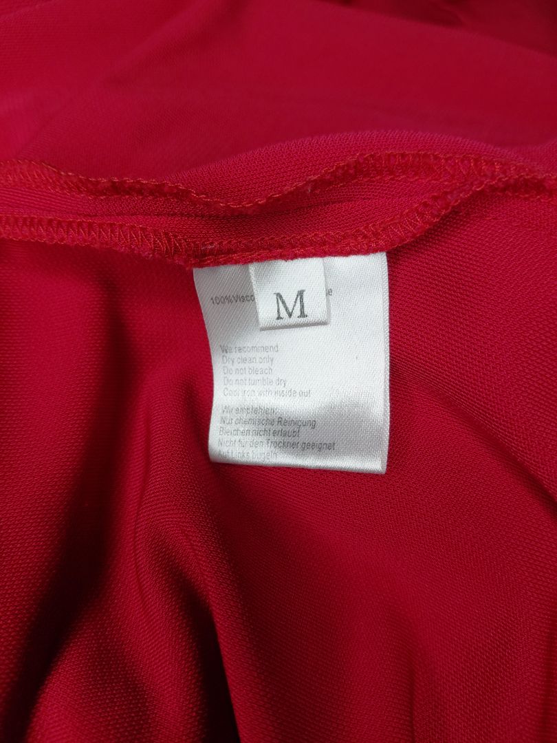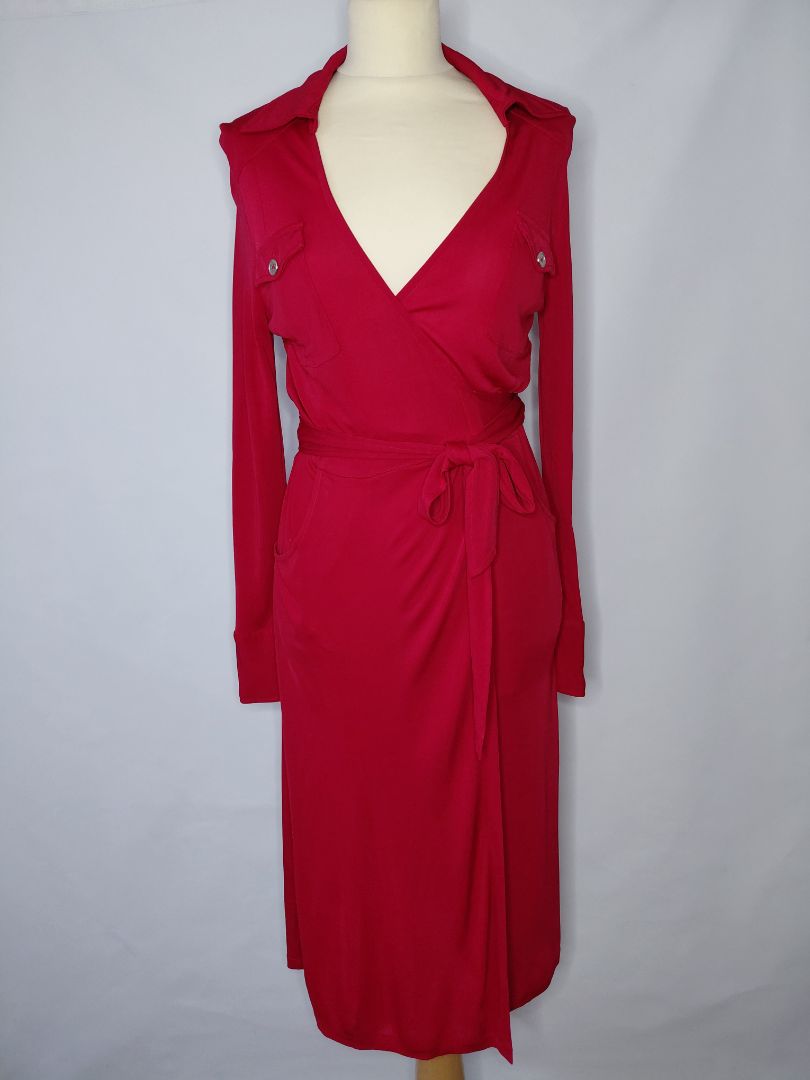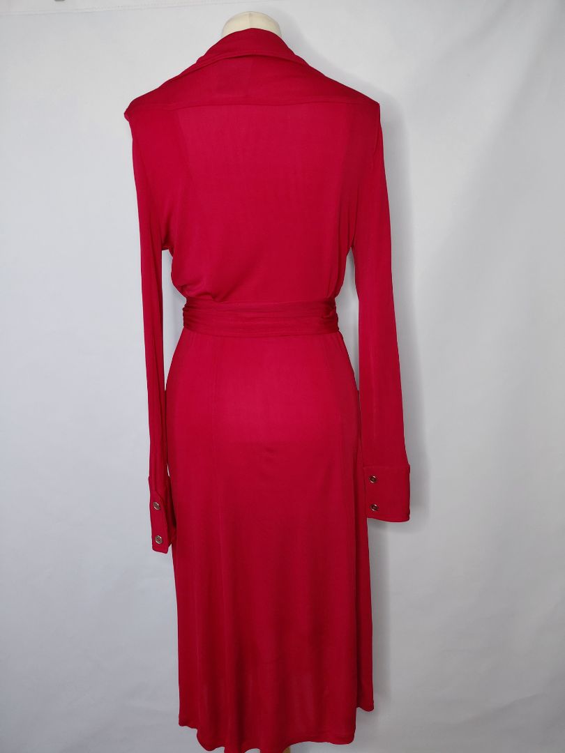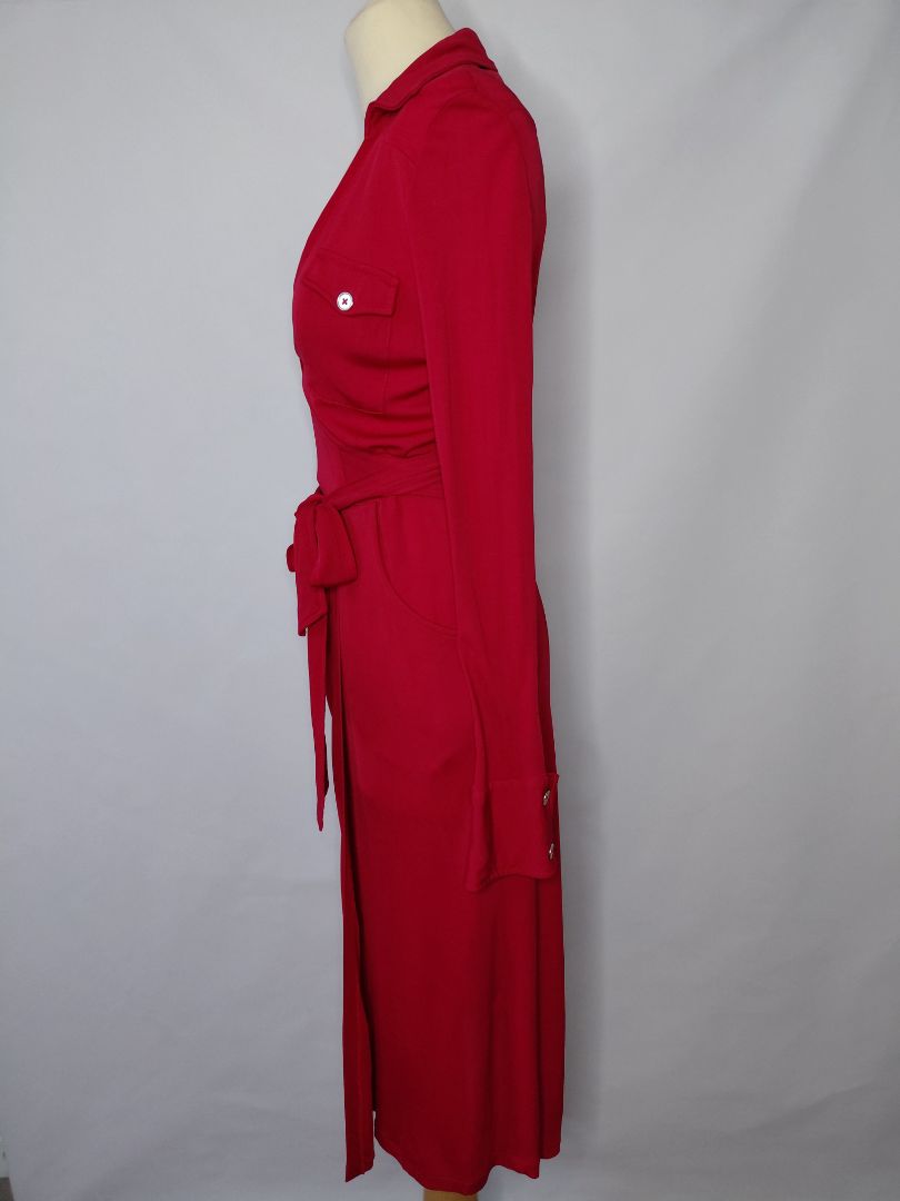 Fallega rauður vafinn skyrtukjóll frá Sand. Þar sem þessi kjóll er vafinn þá er talsvert meira svigrúm í stærðinni en neðangreindar mælingar gefa til kynna.