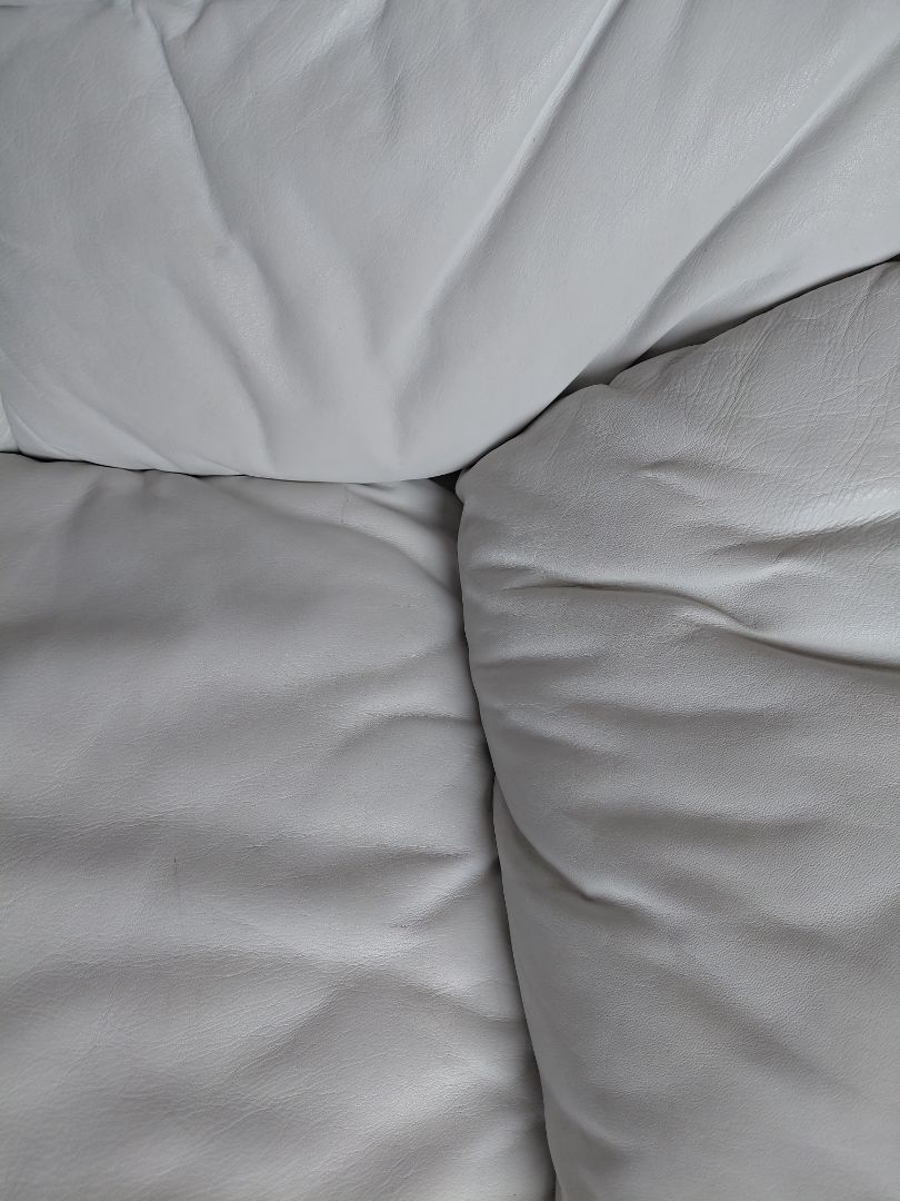 Þetta sófasett er frá 8. áratugnum (1970s) og er virkilega vel með farið. Liturinn er fallega hvítur, mjúklega hvítur/perluhvítur.