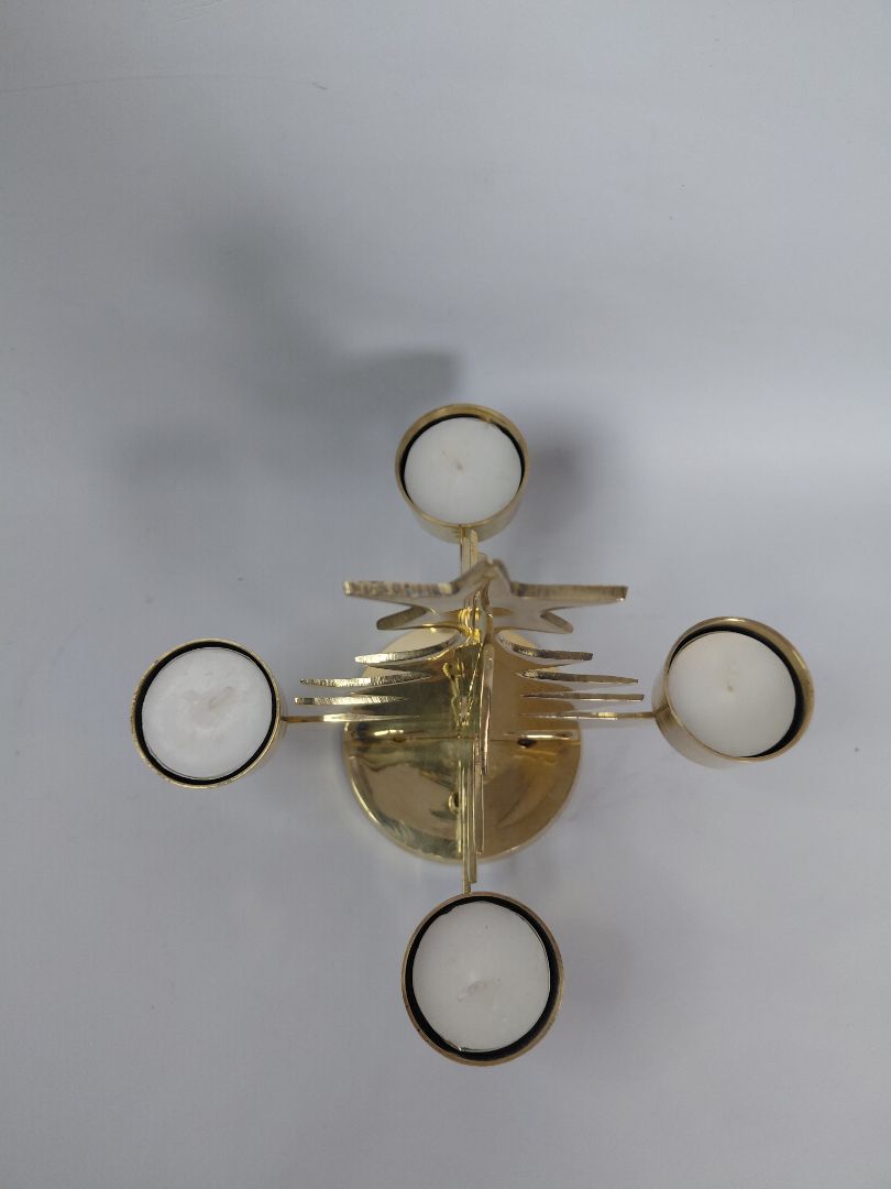 Fallegur vintage brass aðventu kertastjaki fyrir spritt kerti. Ekki er vitað um nákvæman aldur þessa stjaka nema að hann sé frá 8. áratugnum (1970s).