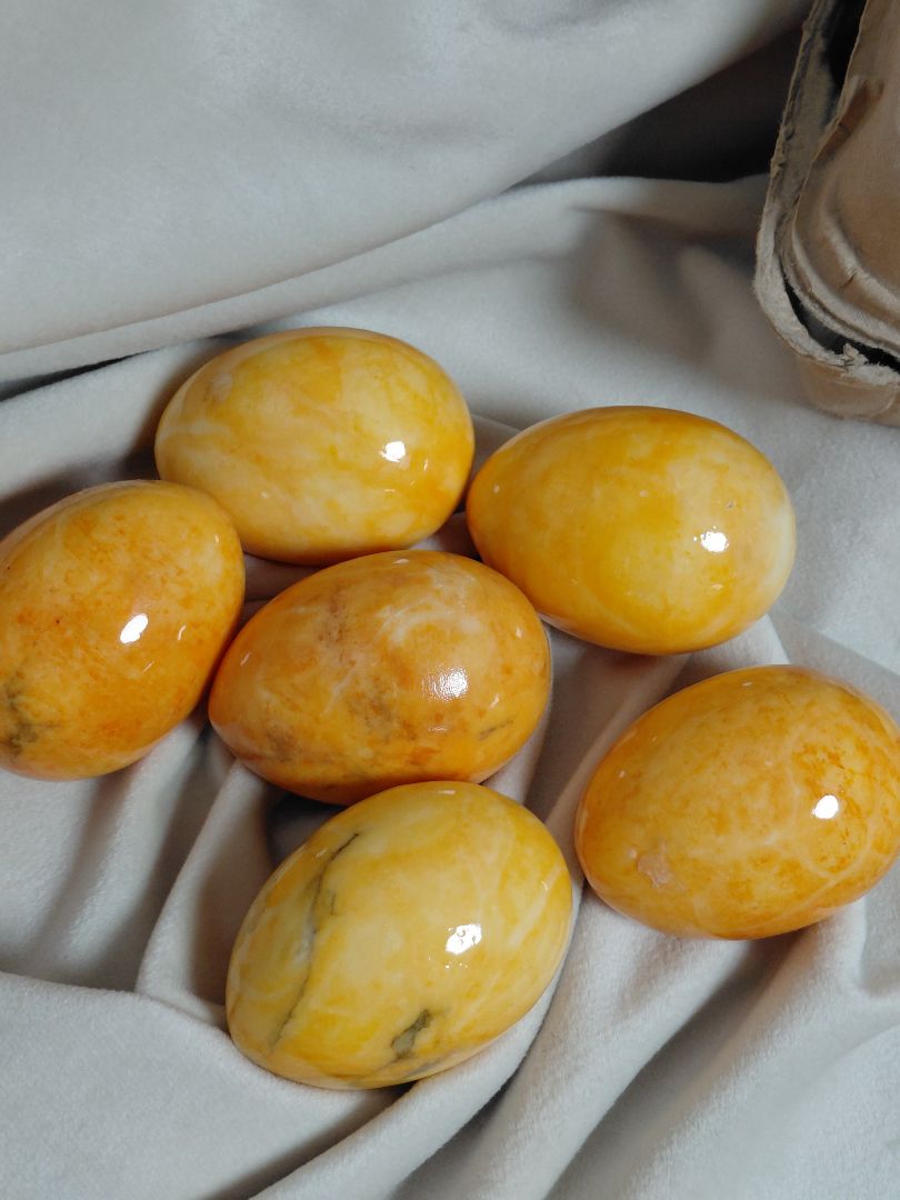Páskaskraut í líkingu við eggjabakka með 6 eggjum. Eggin eru úr stein eða einhverju álíka og eru háglans. Skemmtilegt páskaskraut eða við hvaða tilefni sem er.
