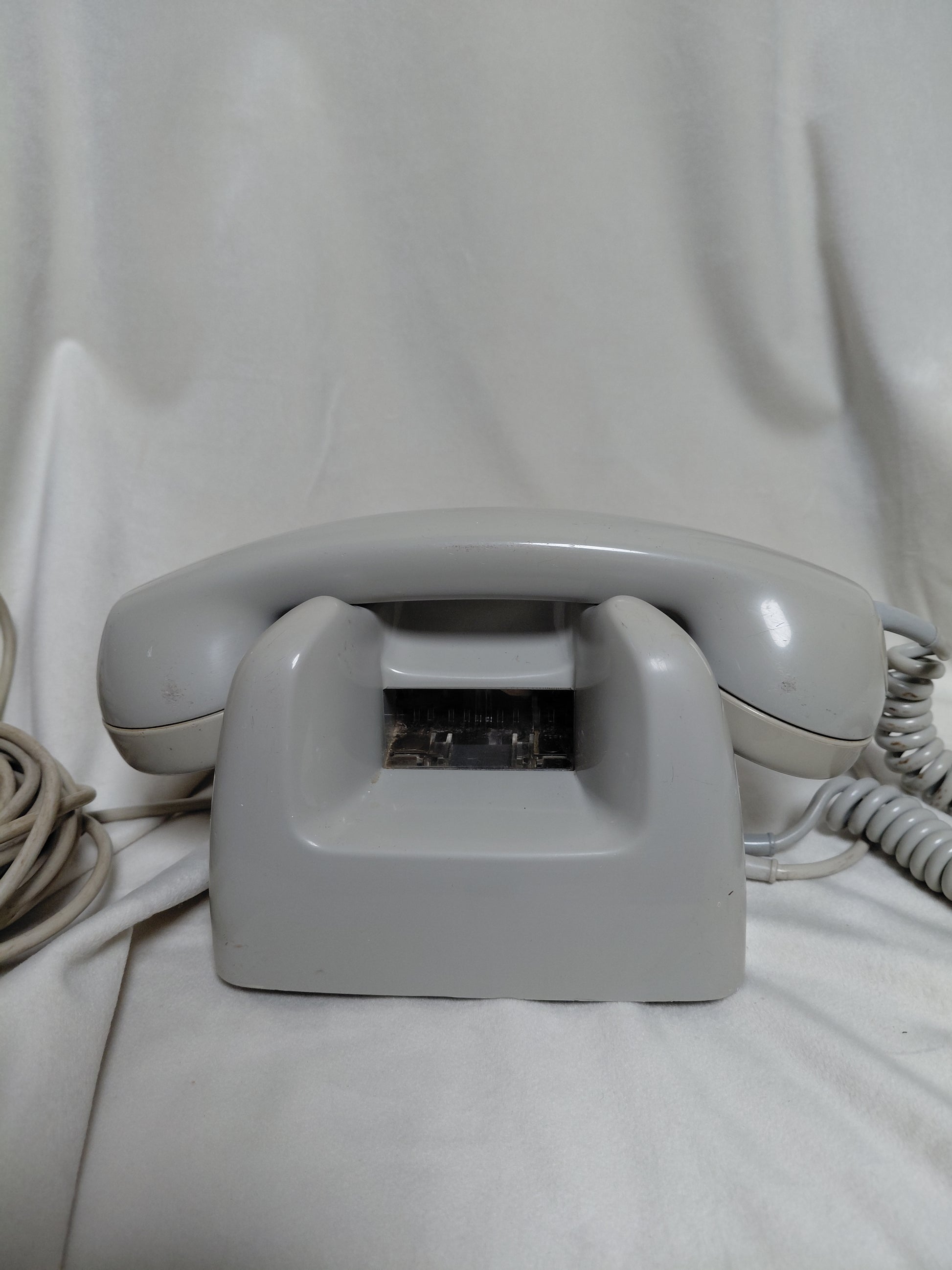 Dásamlegur þessi gamli skífusími frá Ericson sem myndi prýða sér vel sem skraut á einhverju heimili. Hann er tengdur langri snúru og með innstungu. Samkvæmt seríalnúmerinu aftan á símanum þá var þetta eintak framleitt árið 1966.