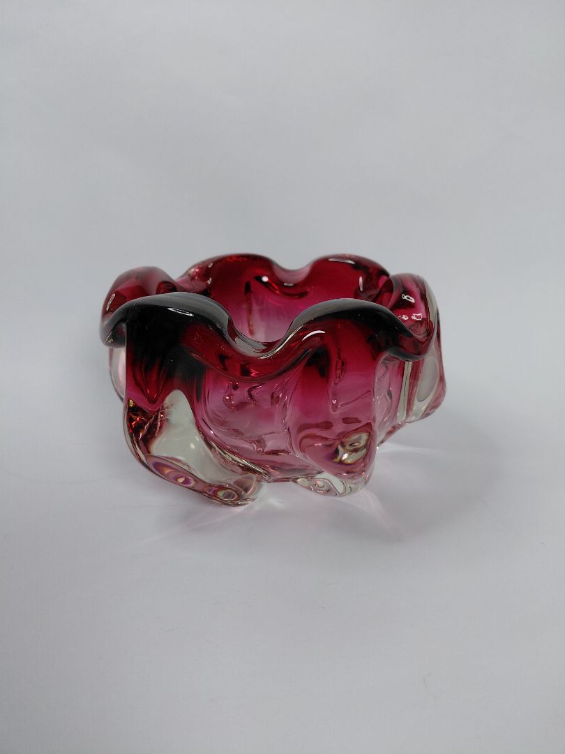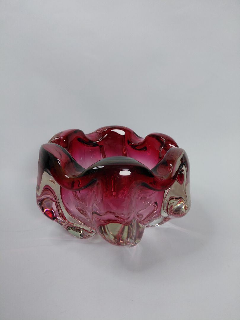 Falleg og vegleg vintage skál frá árunum 1960-1965 og að öllum líkindum eftir tékkneska listamanninn Josef Hospodka. Þessi skal ber öll þess merki um að vera eftir tékkneska listamanninn Josef Hospodka þar sem hann hannaði skálar sem þessar úr mjög þykku gleri (1 cm+) og áttu að líkjast blómi.