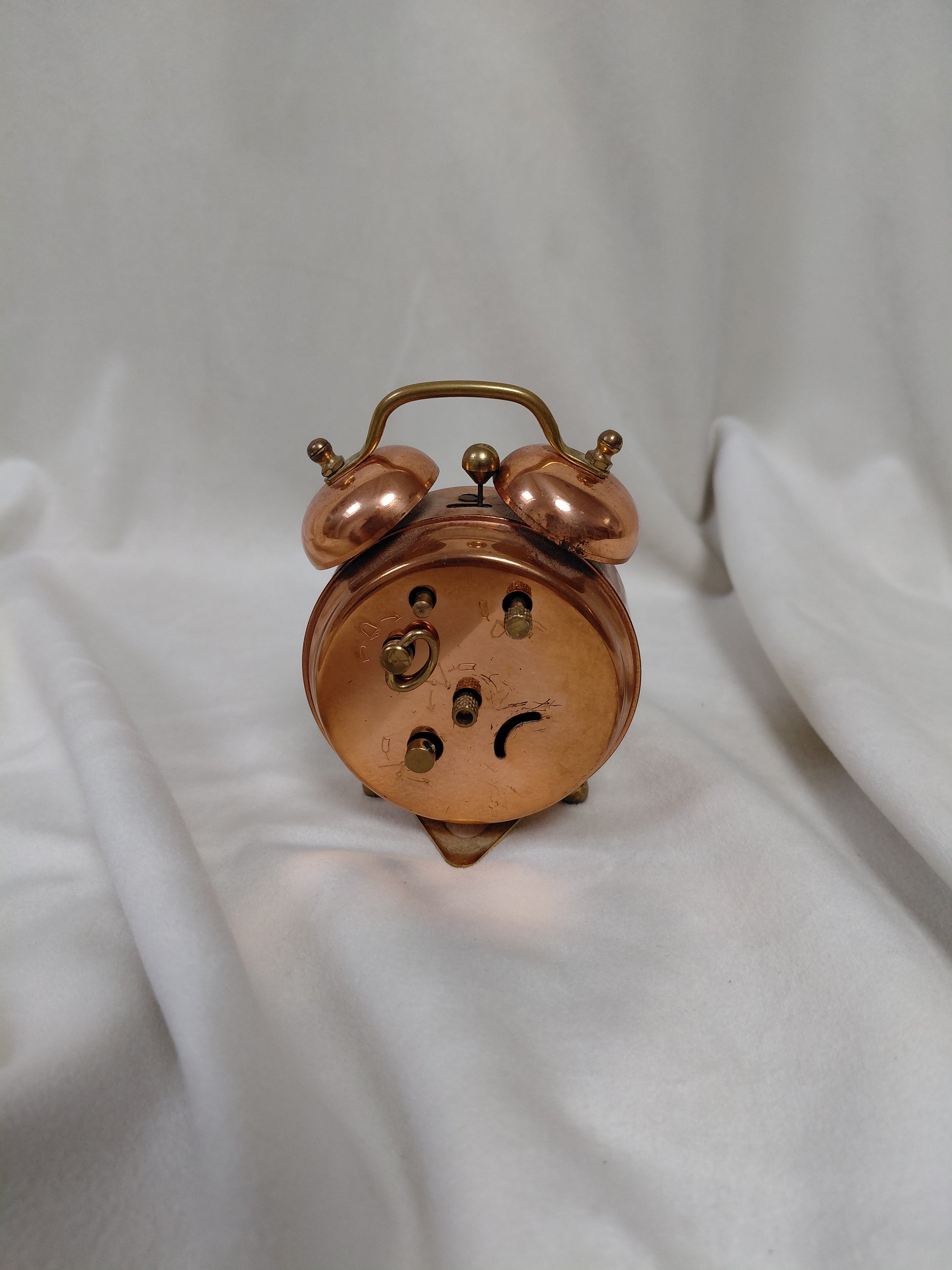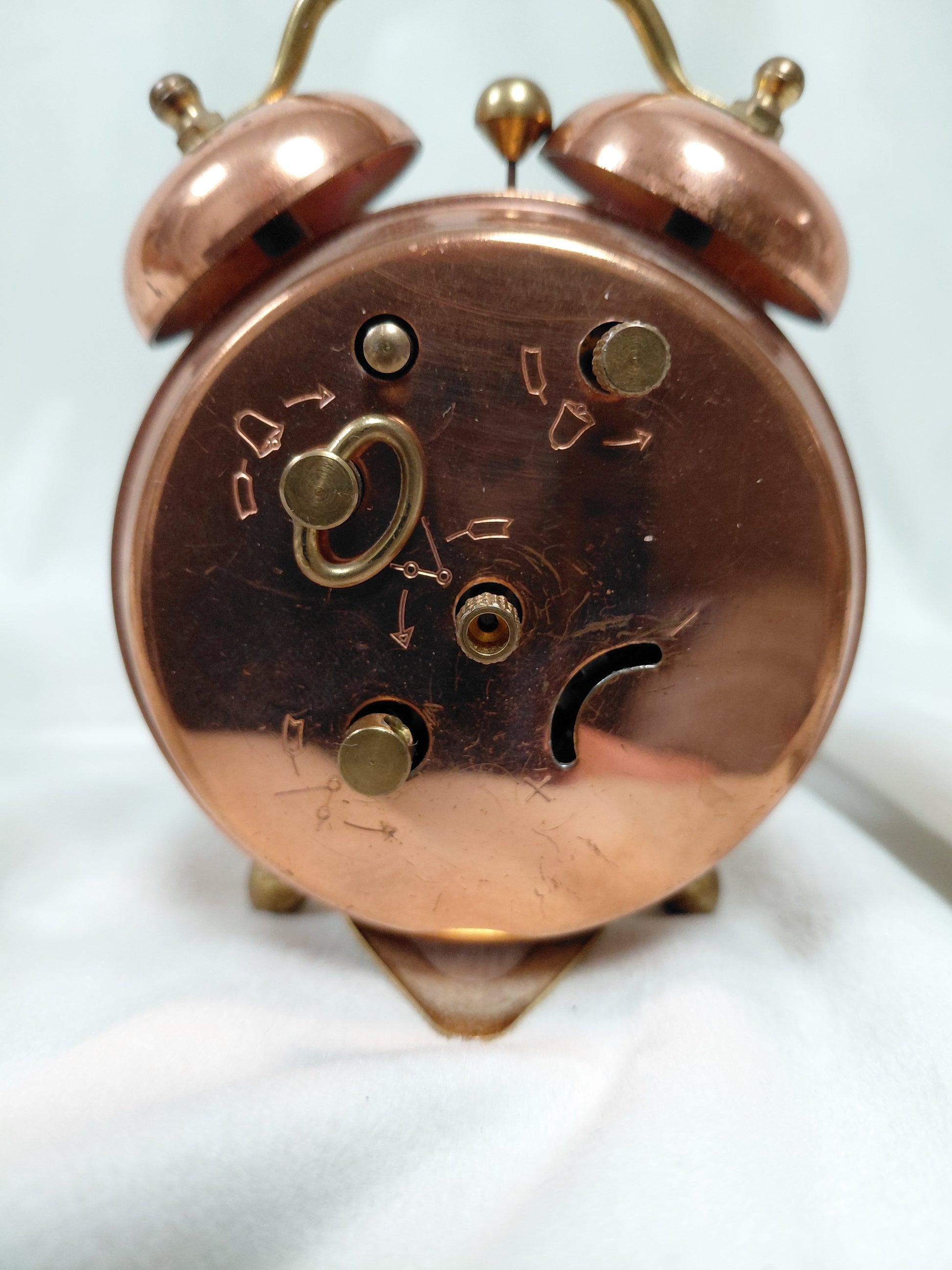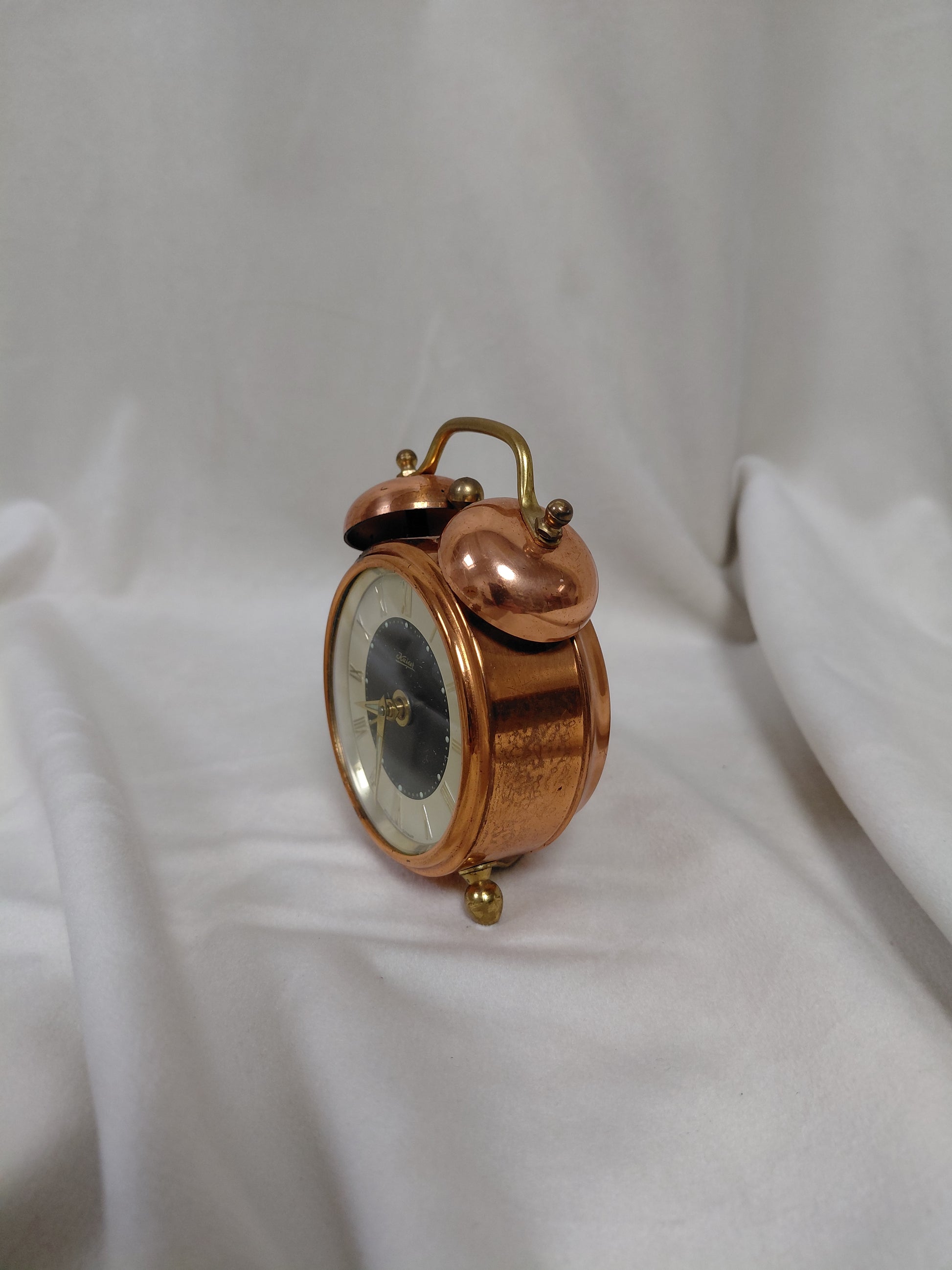 Dásamleg kopar vekjaraklukka frá 6. áratugnum (1950s). Hægt að stilla alla arma, stilling vekjaraklukku vísis þó tregur. Trekkingin er ekki að virka. Þessi klukka er seld sem skrautmunur.