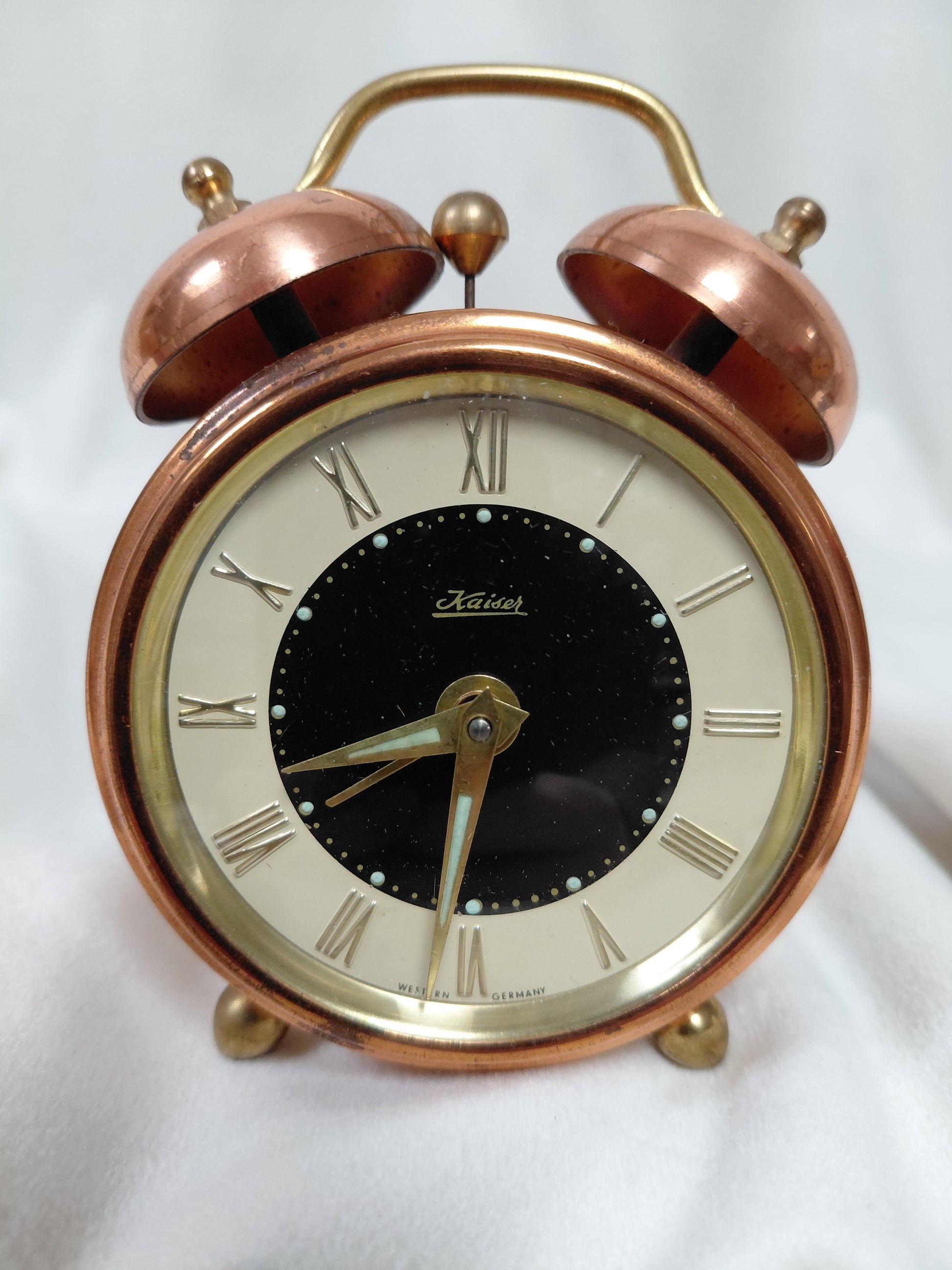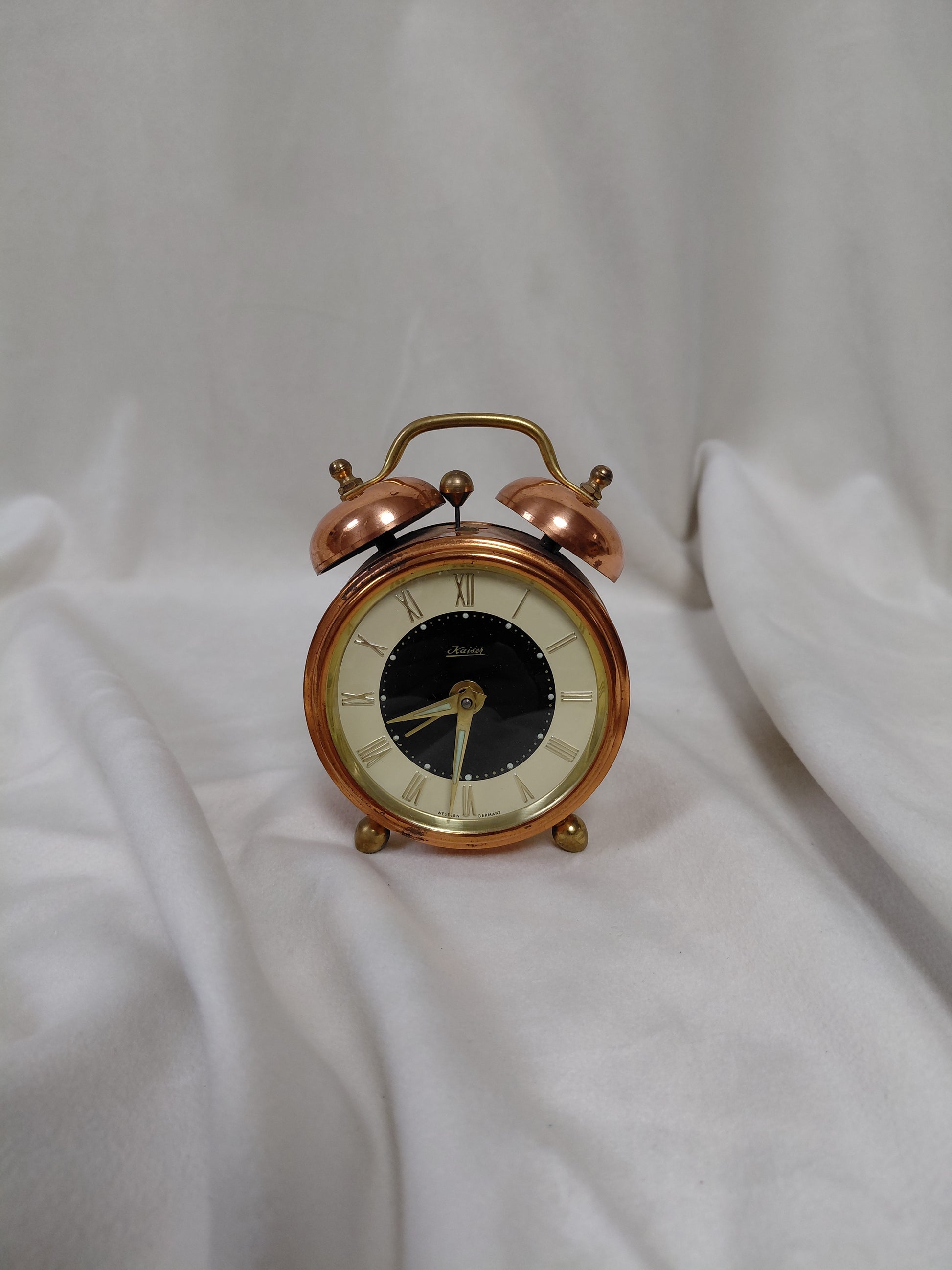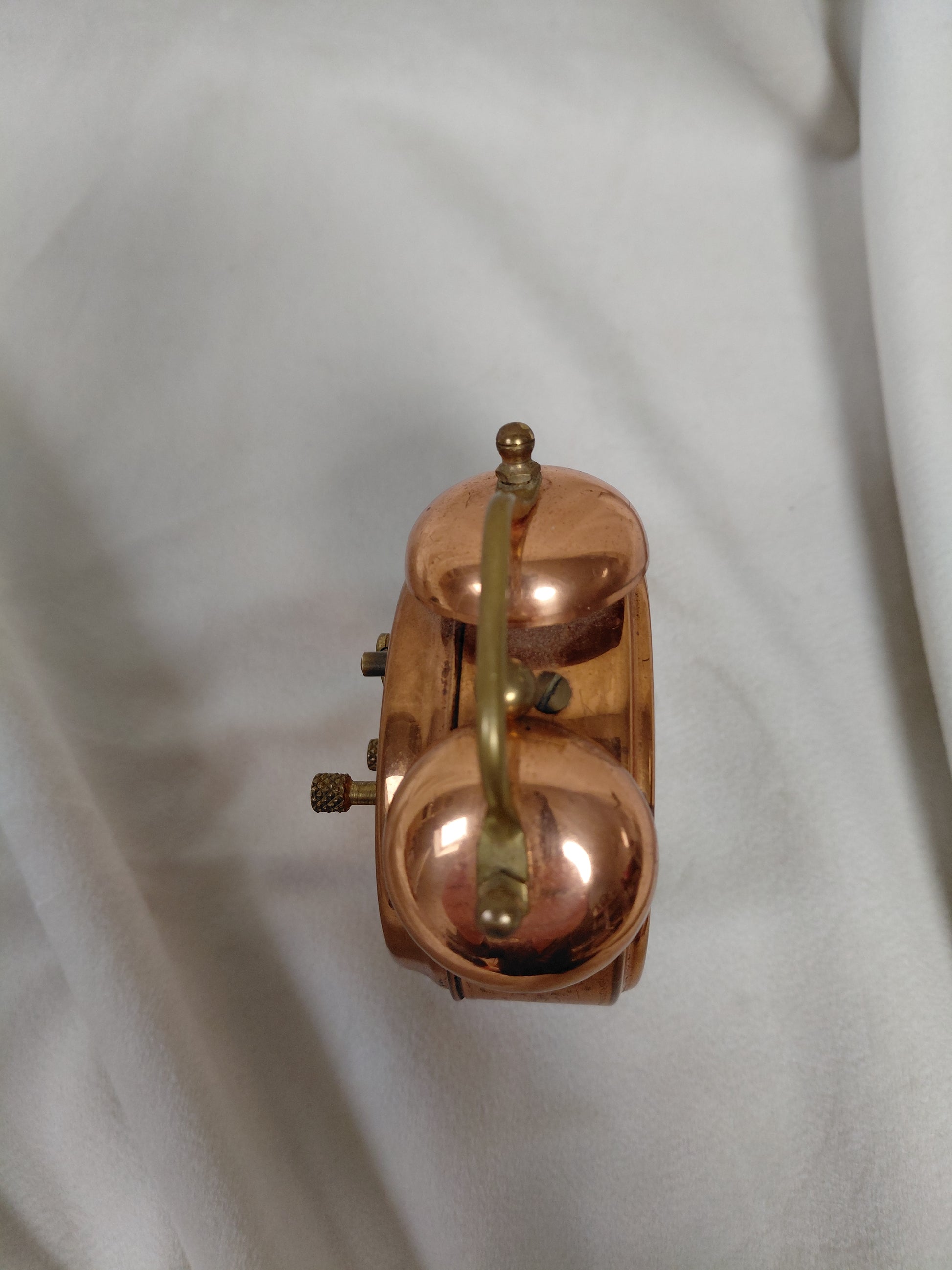Dásamleg kopar vekjaraklukka frá 6. áratugnum (1950s). Hægt að stilla alla arma, stilling vekjaraklukku vísis þó tregur. Trekkingin er ekki að virka. Þessi klukka er seld sem skrautmunur.